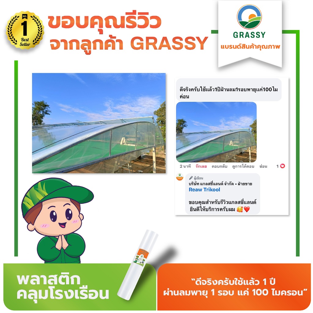 พลาสติกคลุมโรงเรือน GRASSY ที่แกลสซี่แลนด์ส่งถึงมือเกษตรกร เอกชน ภาครัฐ เน้นความสำคัญคือคุณภาพ ผลลัพธ์หลังการใช้งานเป็นอันดับ 1 สร้างความเป็นมืออาชีพให้แก่เกษตรก