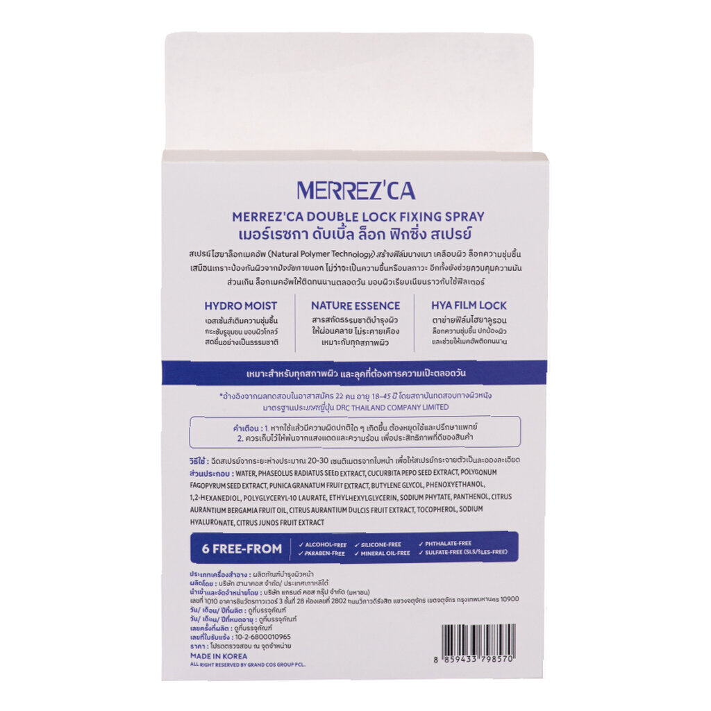 เมอร์เรซกา เดย์-ทู-ไนท์ เมคอัพ ฟิกซิ่ง สเปรย์ มีเทคโนโลยีที่ใช้โพลิเมอร์จากธรรมชาติในการสร้างฟิล์มบางๆบนผิว ฟิล์มนี้ช่วยล็อกเมคอัพให้อยู่ติดกับผิวหน้าได้นานตลอดวัน โดยไม่ลอกหรือหลุดง่าย และยังทำหน้าที่เหมือนเกราะป้องกันผิว ช่วยกักเก็บควา