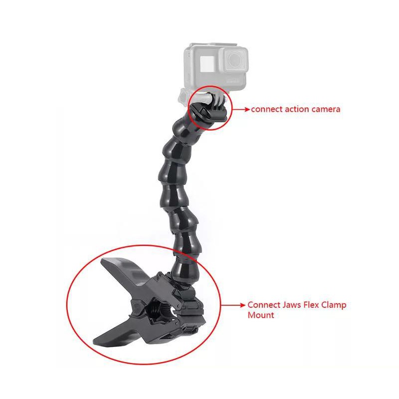 รายละเอียดสินค้า Flex Clamp 7 Section Serpentine Arm + Strong Universal Clip Flexible Bracket for GoPro Hero 12/11/10/9/8/7/6/5/4/3 SJCam YI Motion Camera Series – Flex Clamp 7 ส่วนแขนงู & คลิปหนีบกระดาษที่ยืดหยุ่นสำหรับ GoPro Hero 12/11/10/9/8/7/6/5/4/3