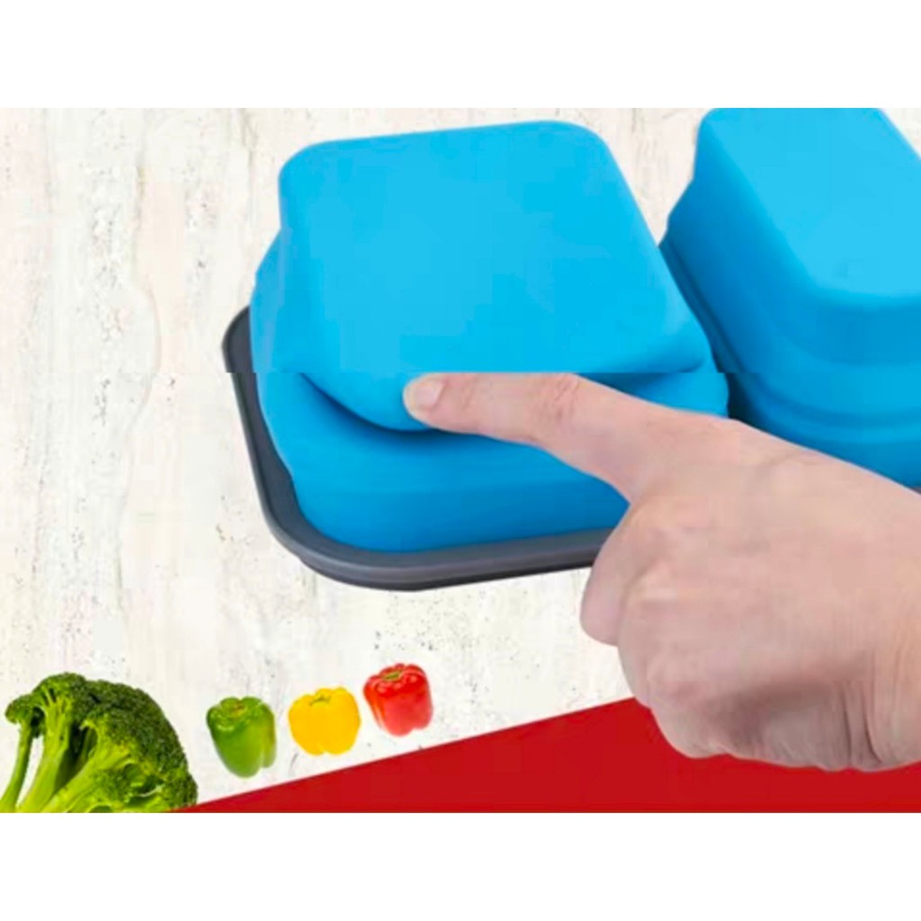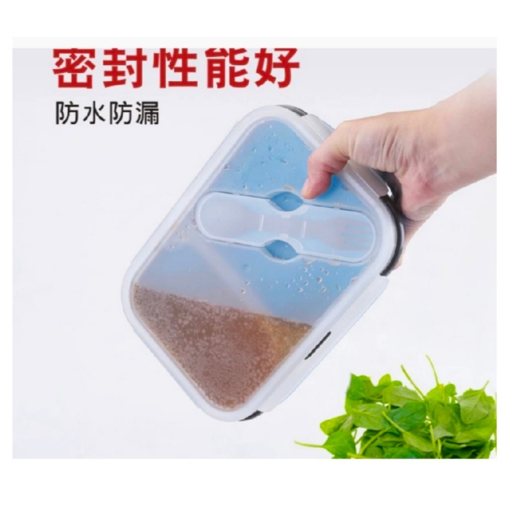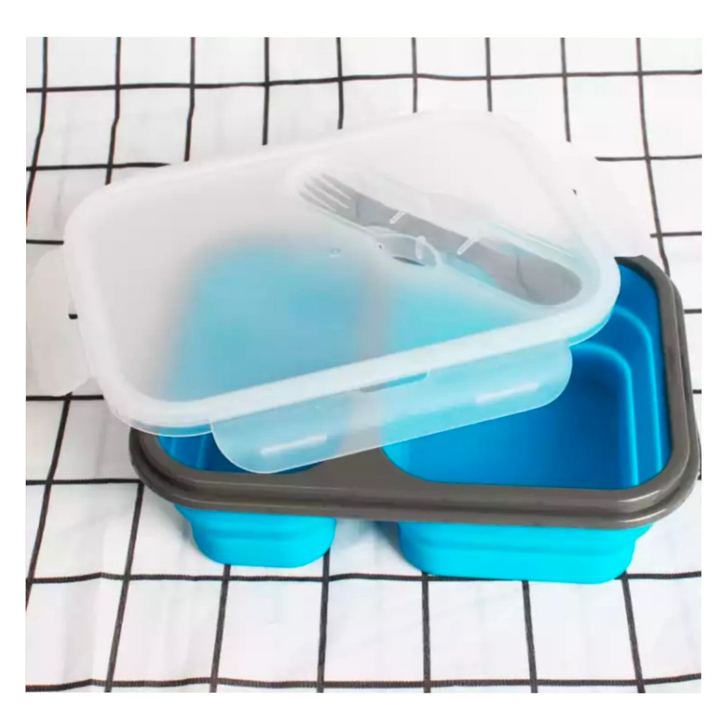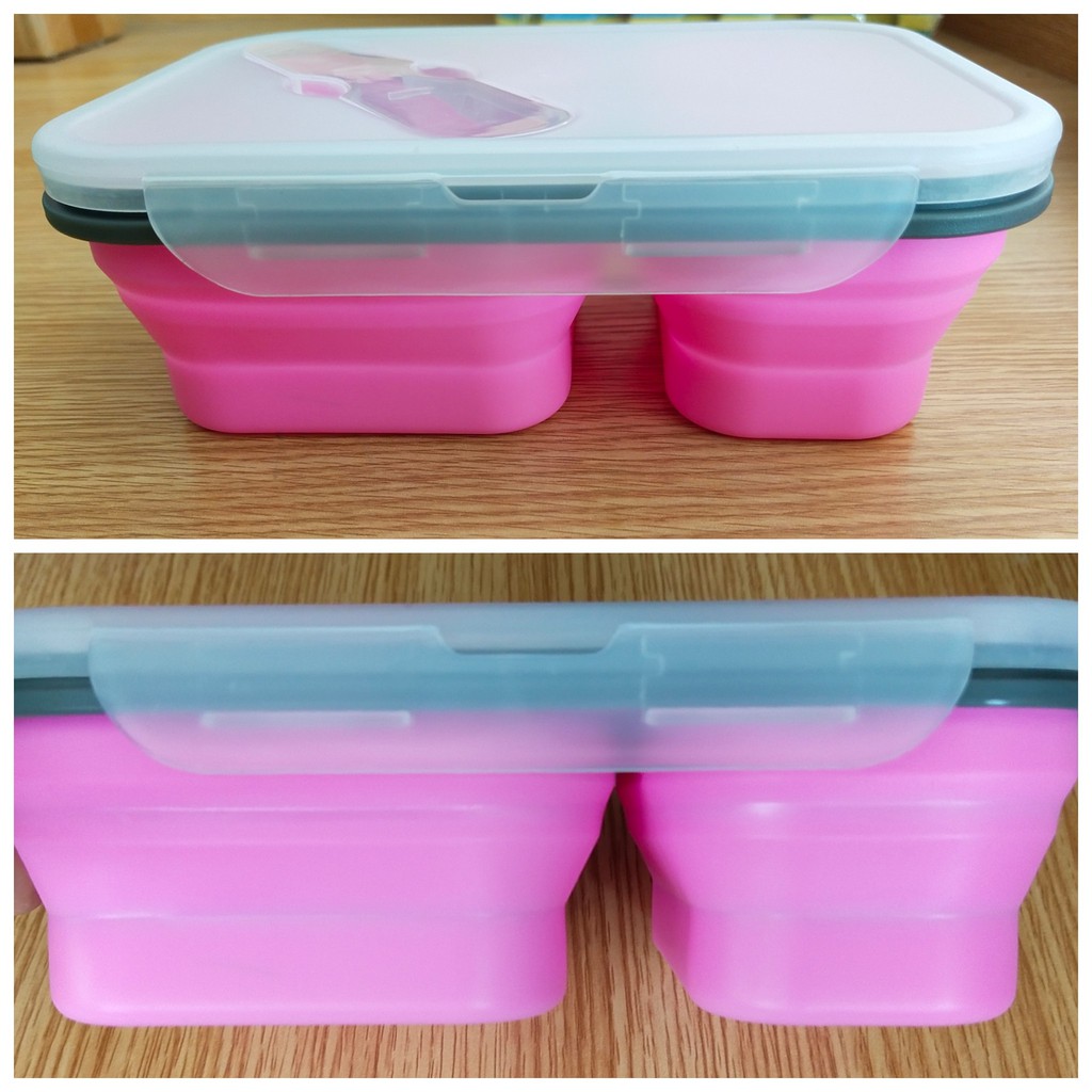 😊กล่องข้าวซิลิโคนพับได้ 2ช่อง แช่ตู้เย็นและเข้าไมโครเวฟได้