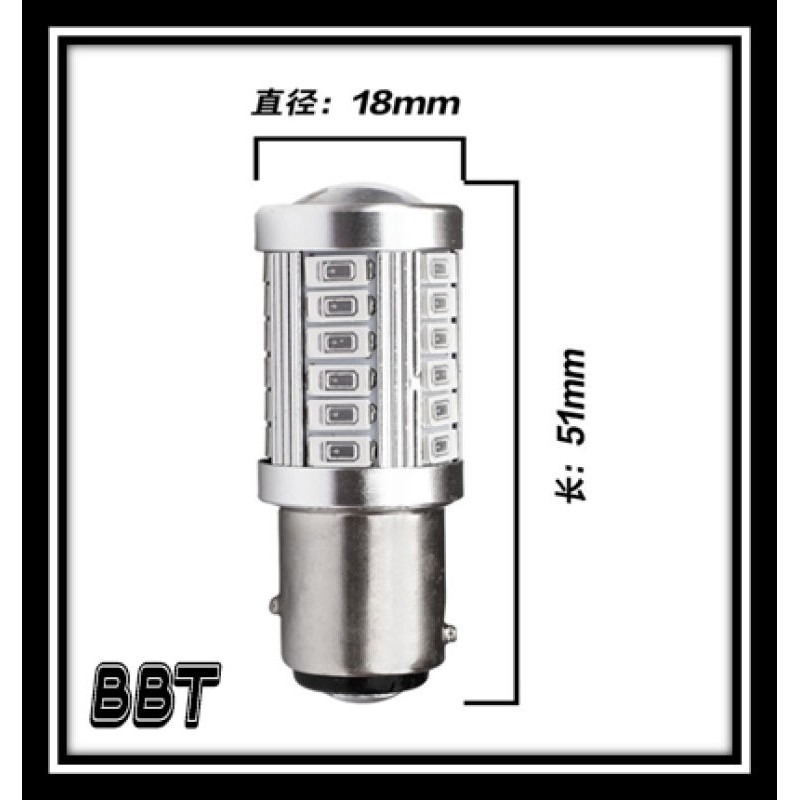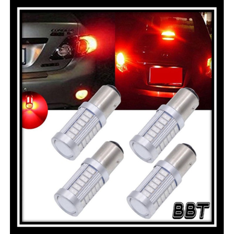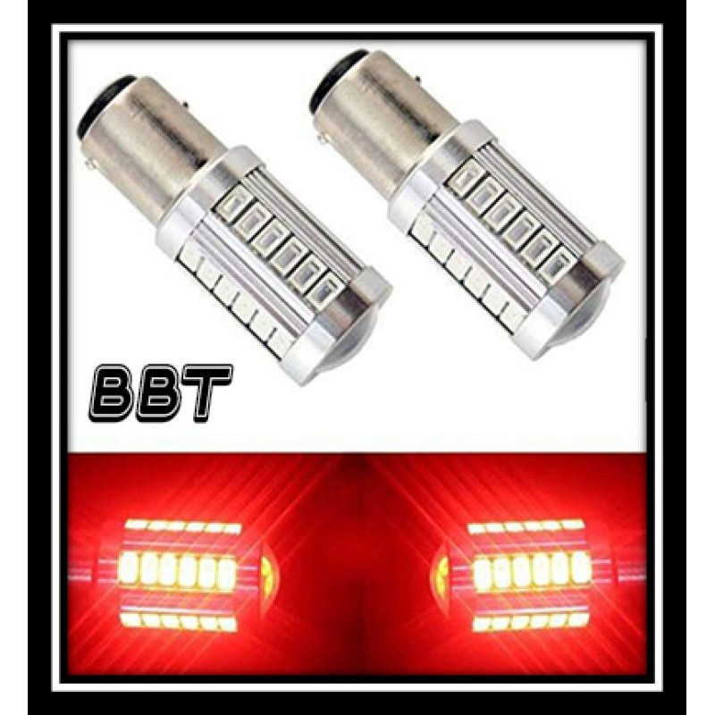 BBT 1คู่ หลอดไฟท้ายรถยนต์ (หรี่+เบรค) แบบขั้วเขี้ยว LED 33 SMD 1157 สีแดง 18W 12 V 1คู่[1157-ตูด2ขั้ว] 1157MD