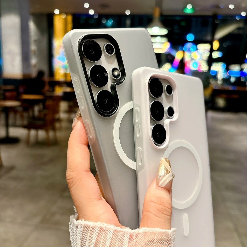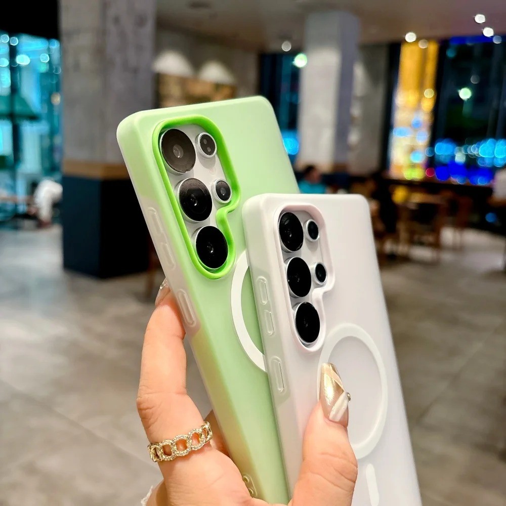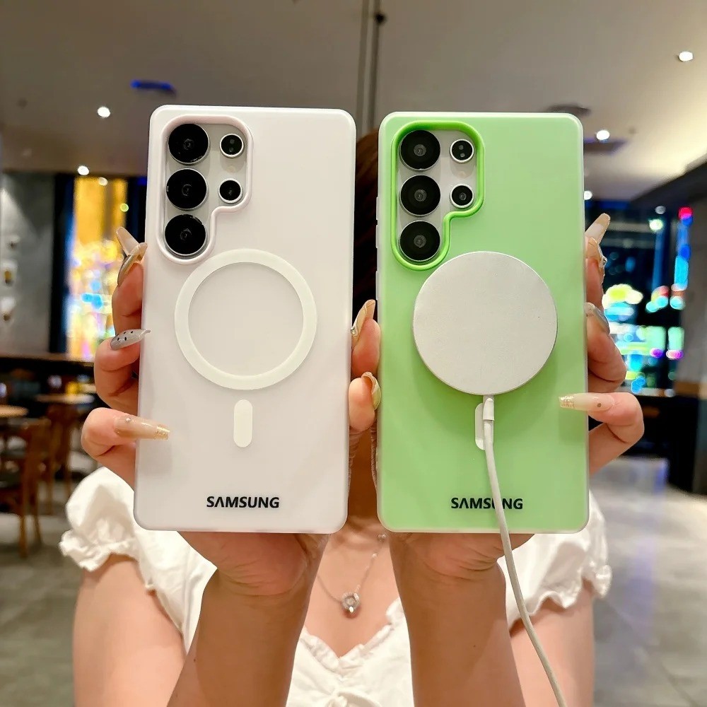 Candy สี Magnetic Jelly เคสโทรศัพท์สําหรับ Samsung Galaxy S25 S24 S23 S22 Ultra Plus FE ไร้สายชาร์จกันกระแทก Matte Soft TPU + PC เคสโทรศัพท์ฝาครอบ