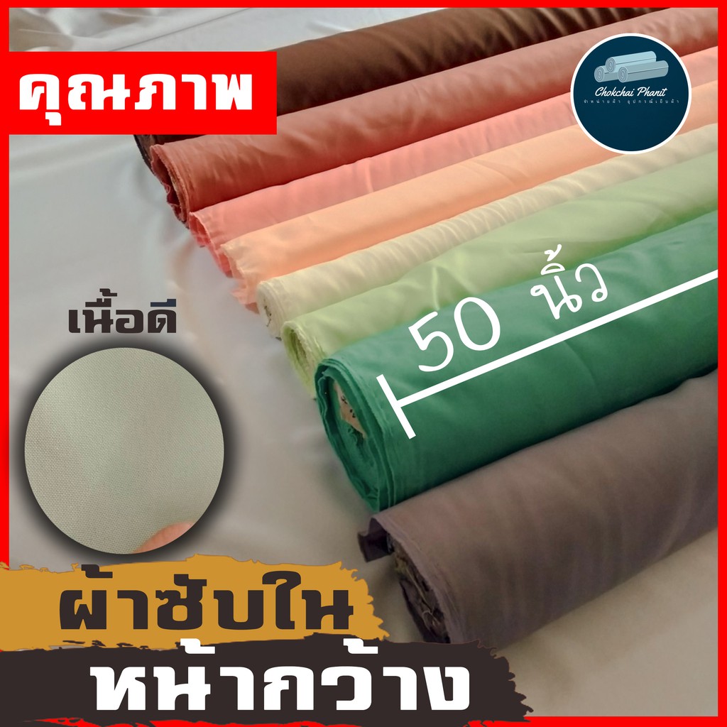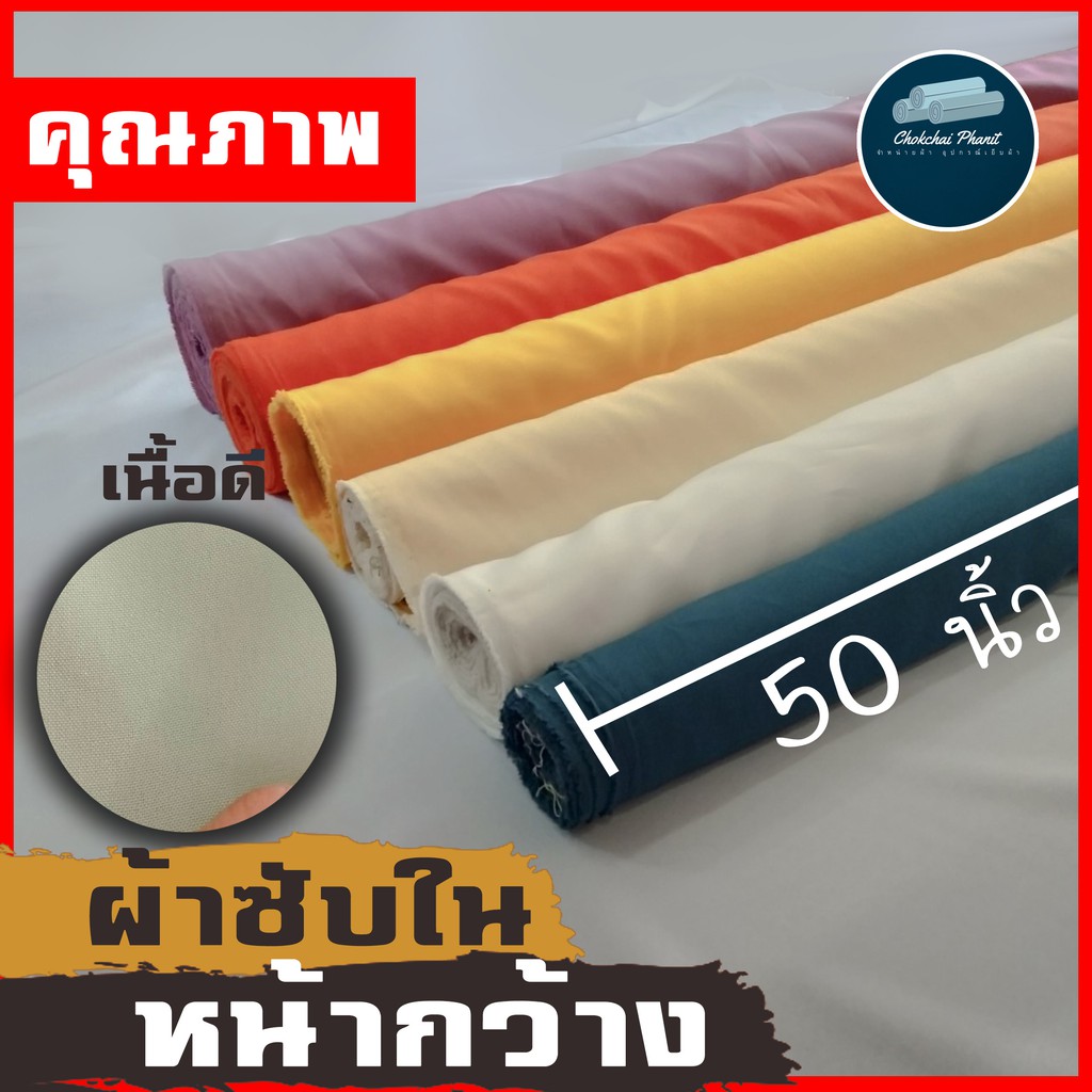 พร้อมส่ง!!!! ผ้าเมตรซับในหน้ากว้างเนื้อดี ผ้าทำซับเสื้อ กระโปรง กระเป๋า ต่างๆ หน้ากว้าง 50 นิ้ว ขายเป็นเมตร สี ขาว ดำ กรม เเละสีอื่นตามรายละเอียดของถาดเบอร์สี หมายเหตุ ถ้าหากคุณลูกค้าสั่งมากกว่า 1 เมตร เเม่ค้าจะตัดเป็นชิ้นเดียวให้เลยน้าค้าาา วิธีการซื้อข