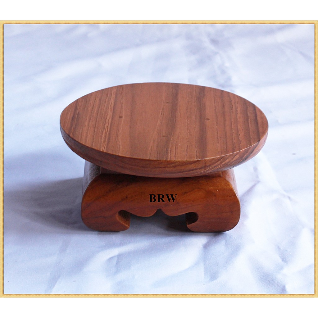 หยิบใส่ตะกร้าฐานวางพระ กลม 4 นิ้ว ผลิตจากไม้สักทอง