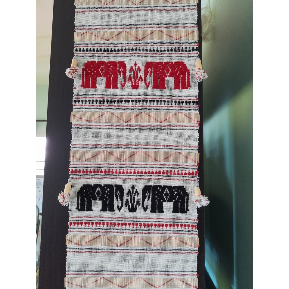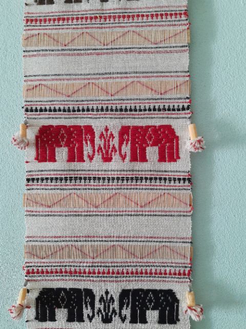 ตุงผ้าทอมือ ลายช้าง (เซตพร้อมหัวตุงไม้)