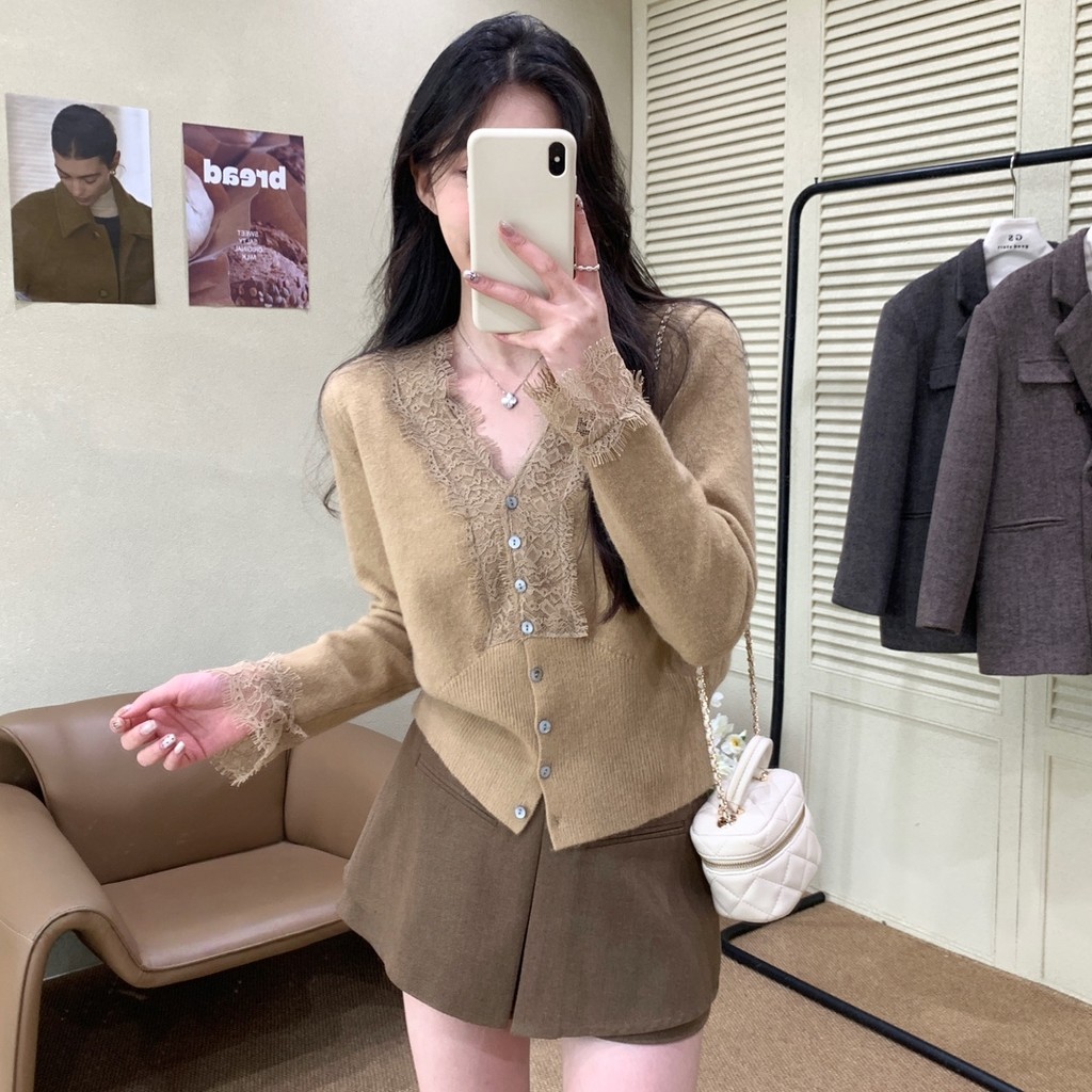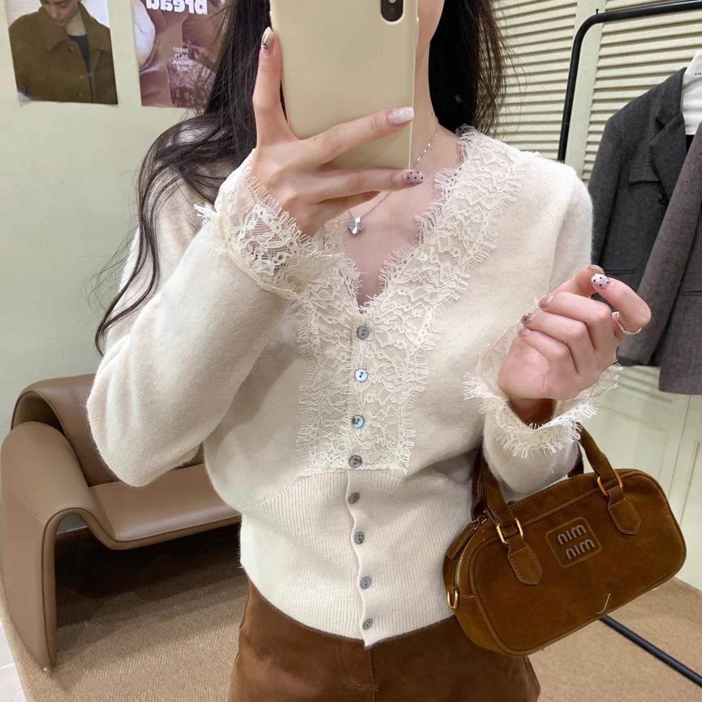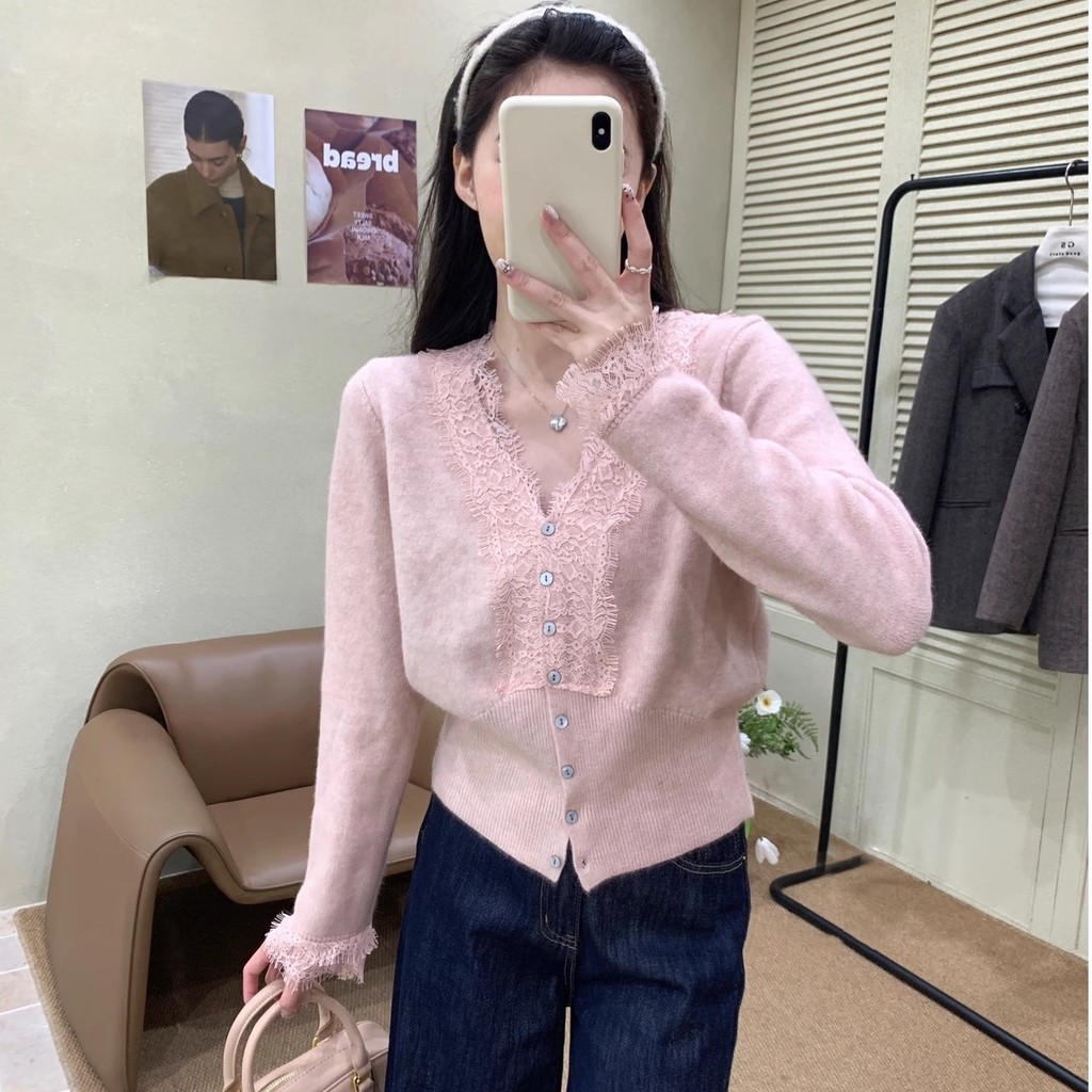 L.A Shop★เสื้อคุณภาพดี เสื้อแขนยาวไหมพรมสไตล์เกาหลี คอวีแต่งลูกไม้ สีสดใสใส่สบาย ผ้าใส่สบาย”Z-T620″