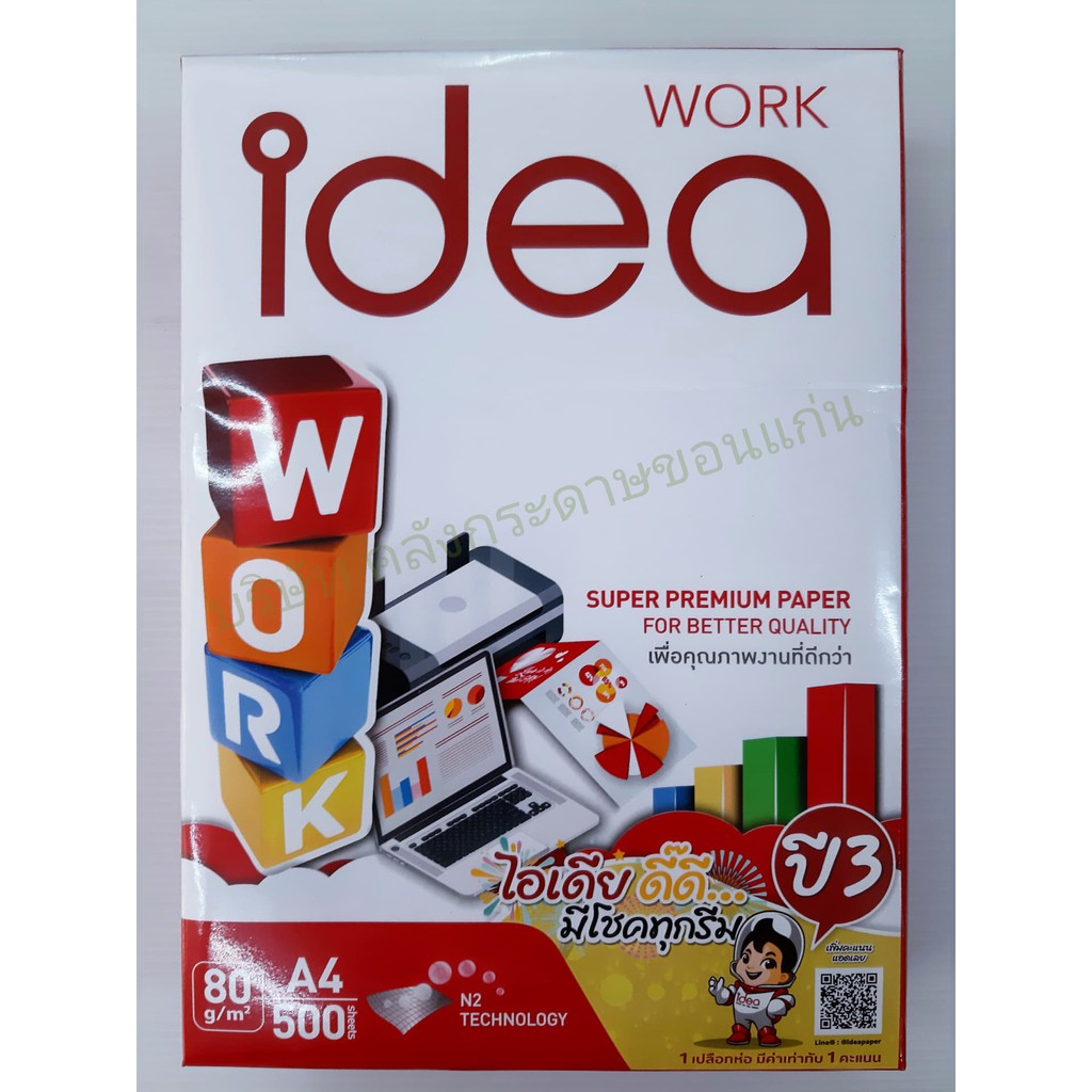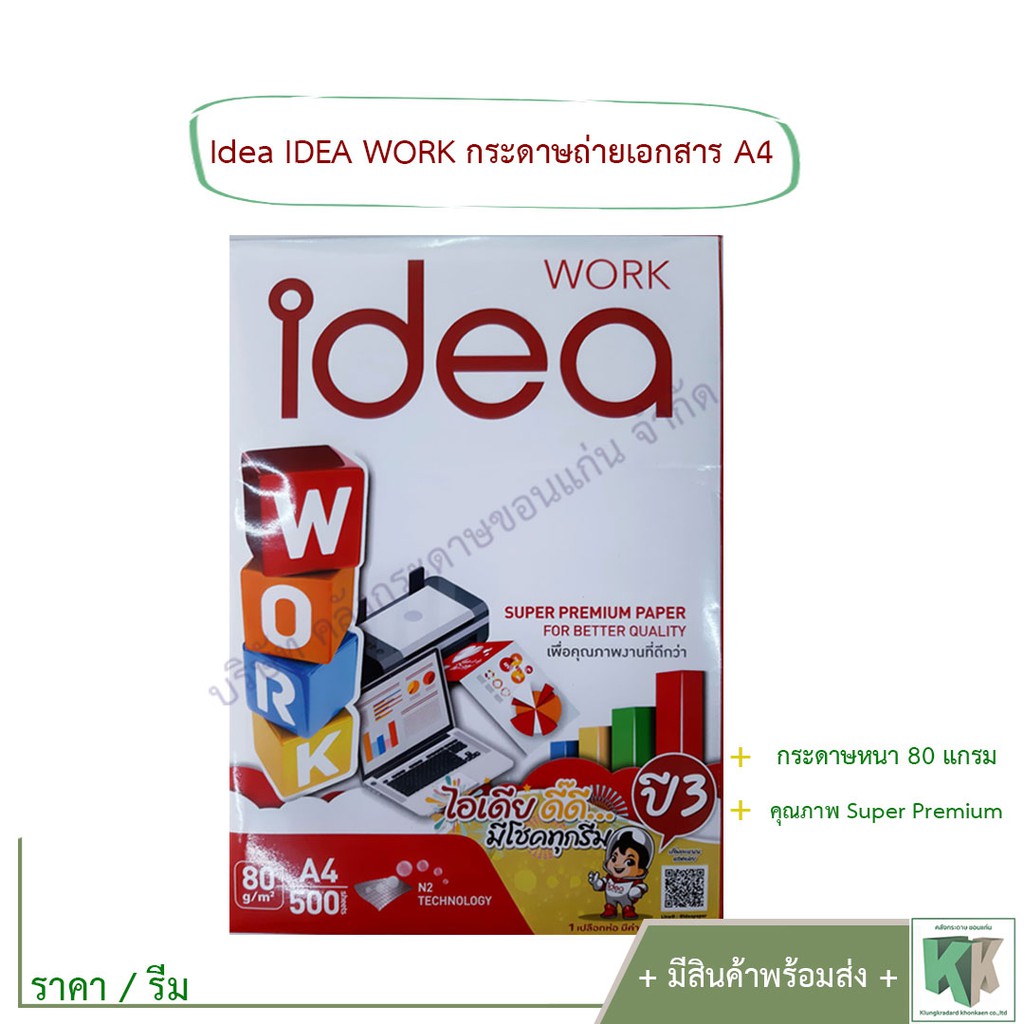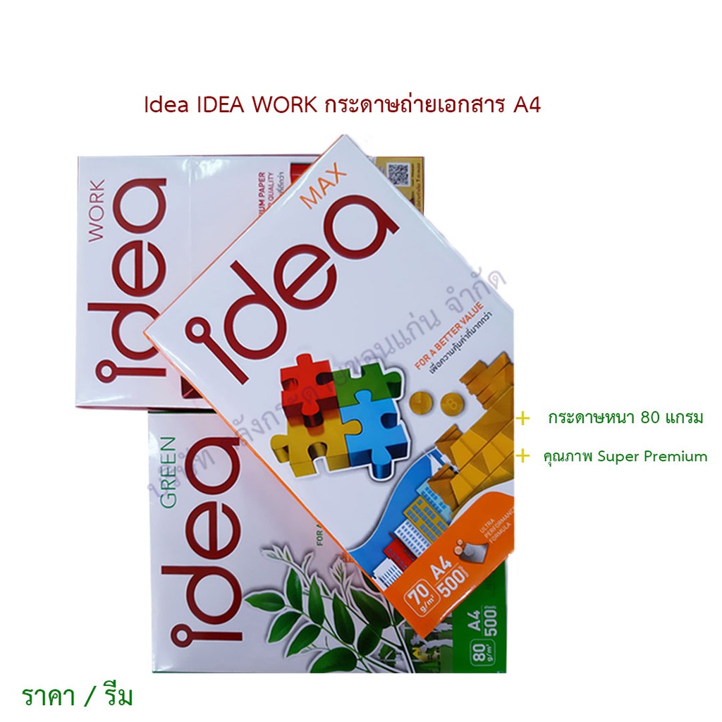 IDEA WORK กระดาษถ่ายเอกสาร A4 80 แกรม กระดาษเนื้อขาวพิเศษ (ราคา/รีม) | คลังกระดาษ