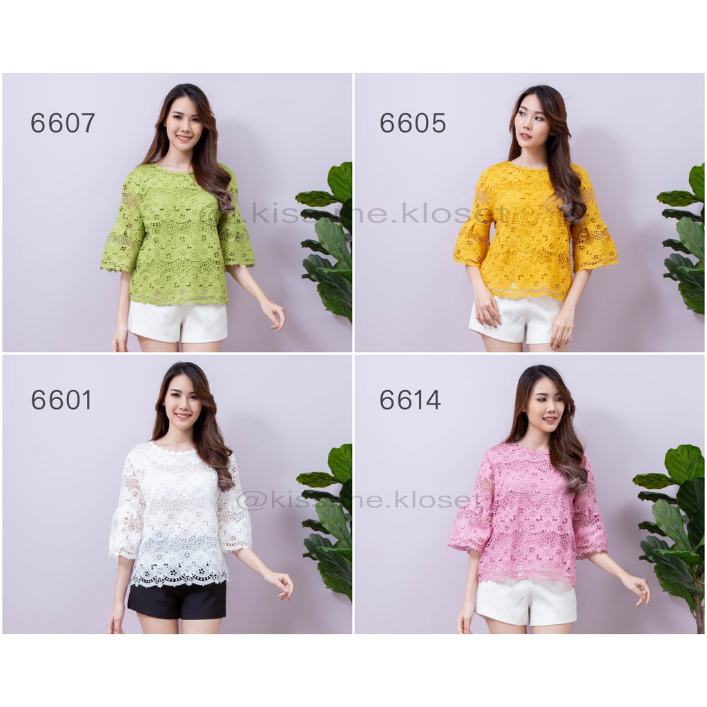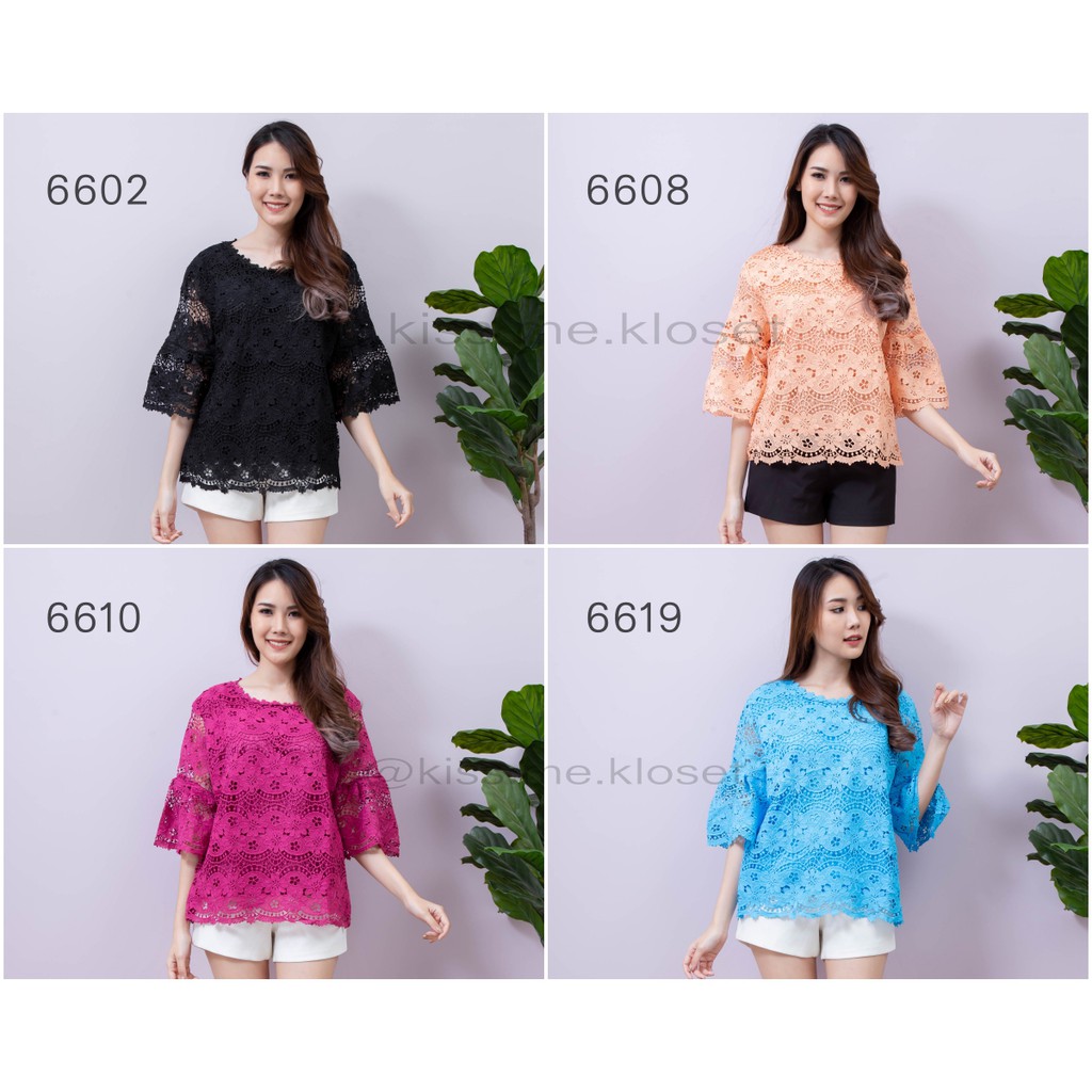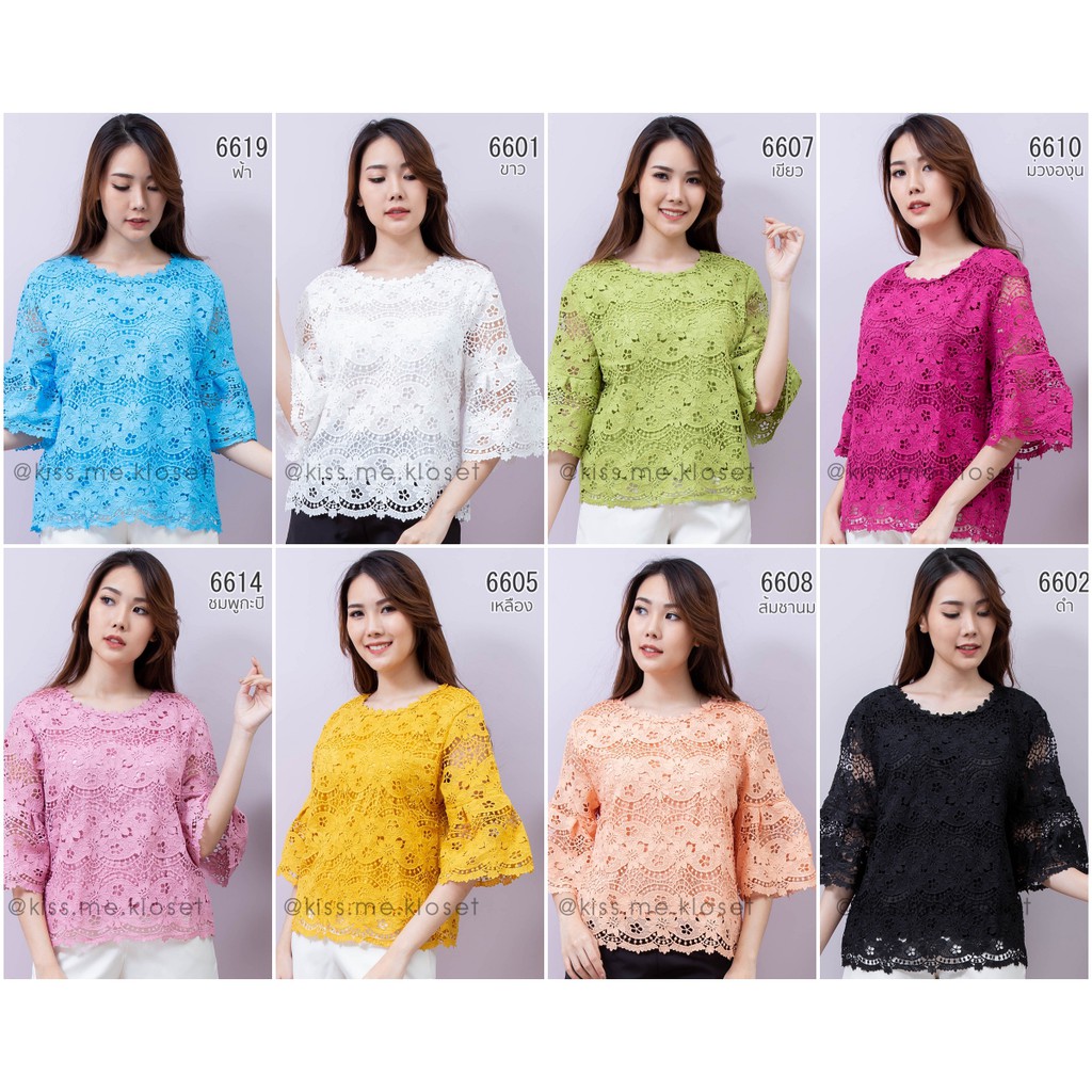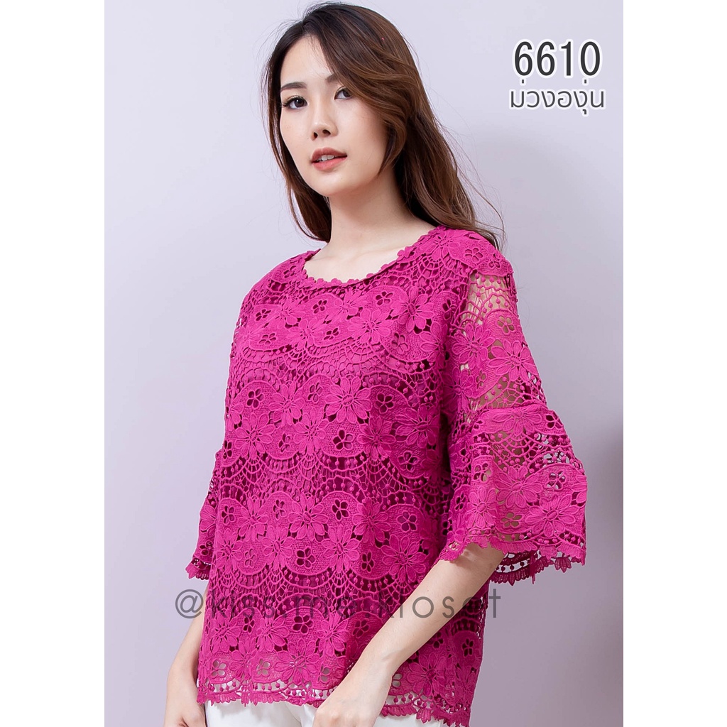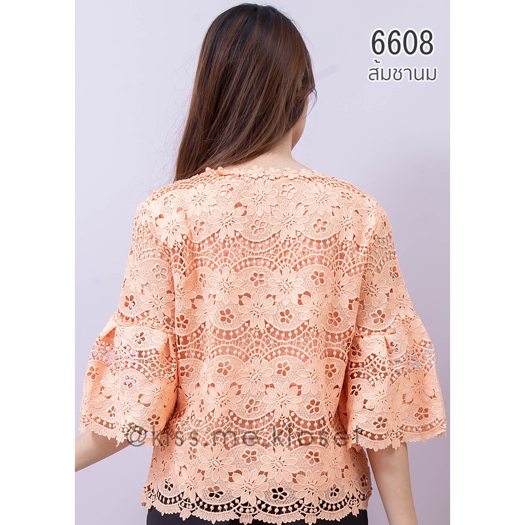 เสื้อลูกไม้ทั้งตัว ปลายแขนระบายเล็กน้อยเพิ่มความหรูหรา ลูกไม้เนื้อดีมีซับใน สีสวยสดใสใส่แล้วขับผิว