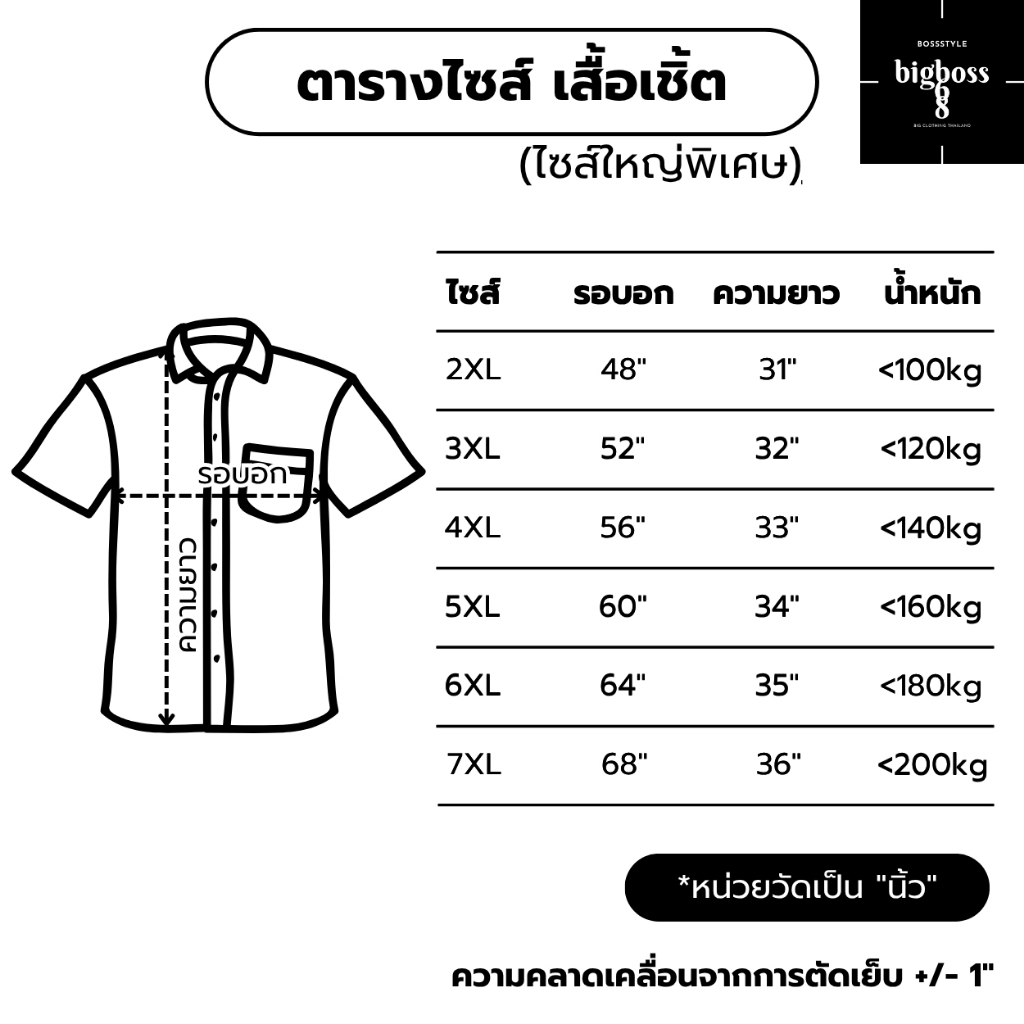 > SUPER BIG! เสื้อเชิ้ตคนอ้วนใหญ่พิเศษ ไซส์หายาก คอปกติดกระดุม 2XL-7XL 48″-68″ 100-200kg