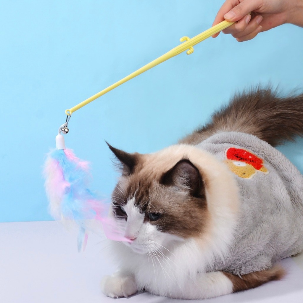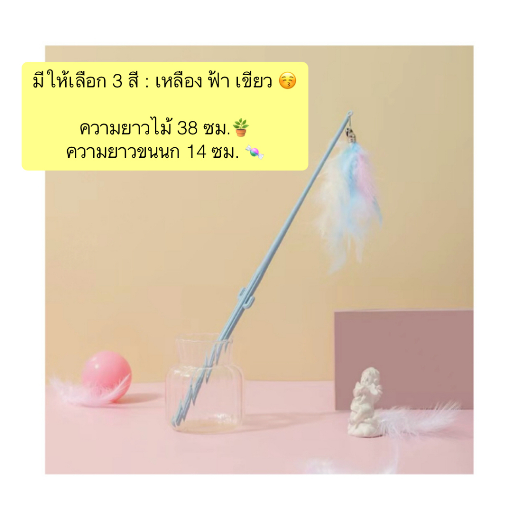 ไม้ตกแมวต้นกระบองเพรช ขนนกสีสวย มีกระดิ่ง ของเล่นแมว ราคาถูก พร้อมส่ง🩷🍬
