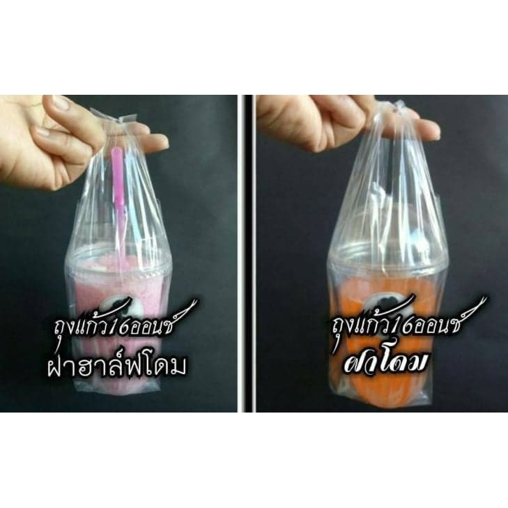 – ถุงหิ้วแก้วเต็มใบ ไฮโซ (ใส) ใส่แก้ว 16 ออนซ์