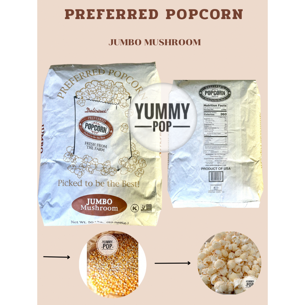 🔥12.12🔥🍿 PREFERRED POPCORN เห็ด JUMBO เมล็ดข้าวโพดดิบ ป๊อบคอร์น นำเข้า พันธุ์เห็ดมัชชรูม ยกกระสอบ 22.68 kg.
