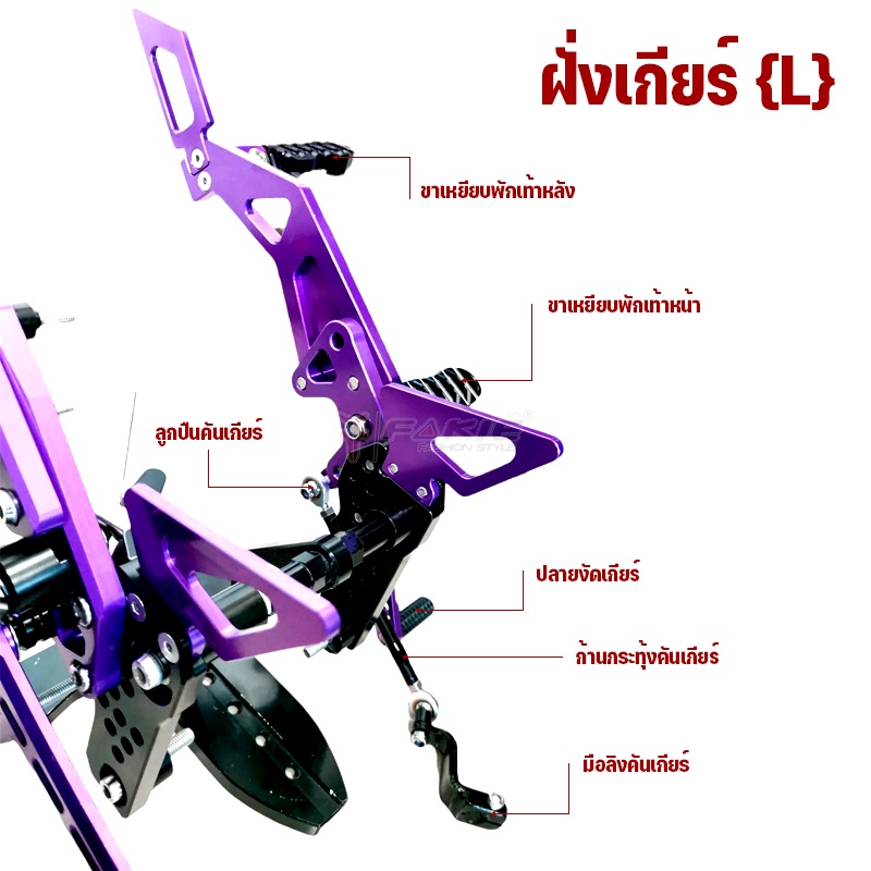 FAKIE เกียร์โยง มีพักเท้าหลัง HONDA MSX125 DEMON125 อลูมิเนียม AI:10610 ทำสี Anodized ไม่ซีดง่าย เข้าเกียร์ง่ายขึ้น