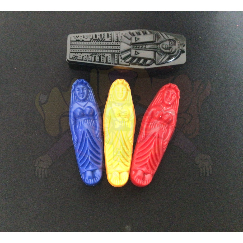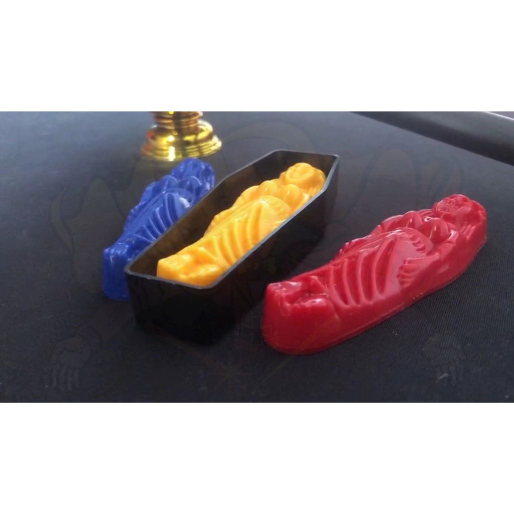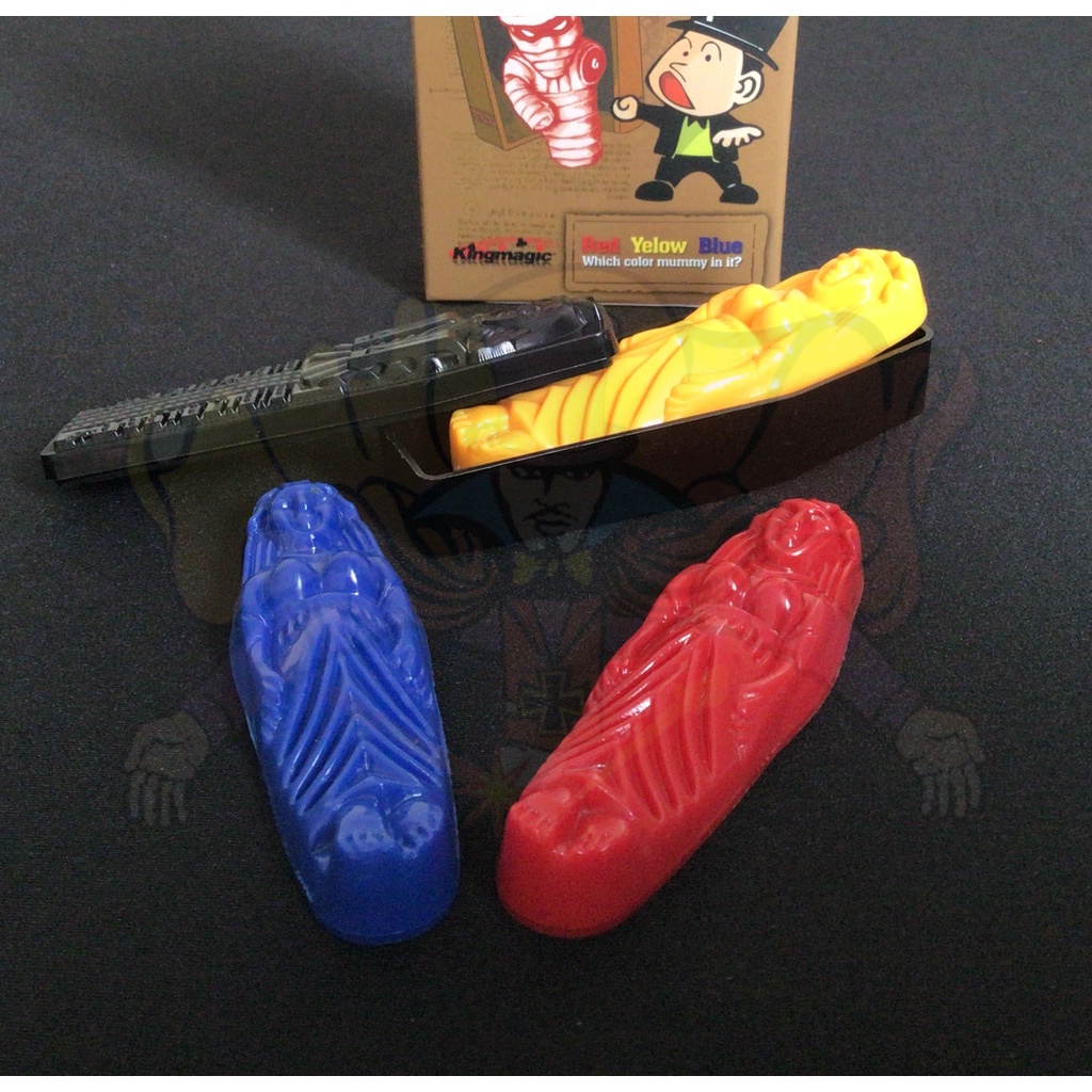 การแสดง : นักแสดงมายากล ให้คนดูเลือกมัมมี่ แล้ว ใส่ ลงใน โรงศพ ปิดฝา โดยที่ นักแสดง มายากล มองไม่เห็นนะคะ สีที่ให้คนดูถือไว้ ไม่ให้นักแสดงมายากลเห็น เช่นกัน จากนั้น นักแสดง สามารถ มองทะลุผ่านกล่อง โรงศพ ก็ทายได้ว่า เลือกสีใด โดยไม่แตะ