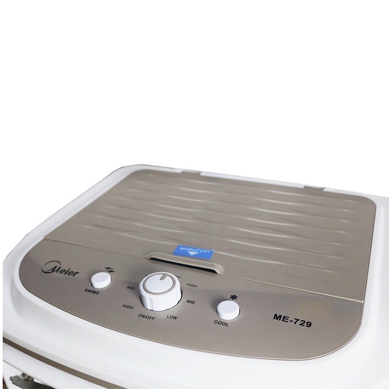 พัดลมไอเย็น Meier รุ่น ME-704 ขนาดความจุ 35 ลิตร • ปรับแรงลมได้ 3 ระดับ High Medium และ Low • ฟังก์ชันการทำงาน Swing และ Cool • ใช้ใบพัดแบบเทอร์โบ ให้แรงลมกำลังสูง • ใบพัดหน้า 13 นิ้ว • ใช้ออกซิเจนประจุลบฟอกอากาศ • ใบพัดมีมุมกว้าง กระจายลมเย็นได้ทั