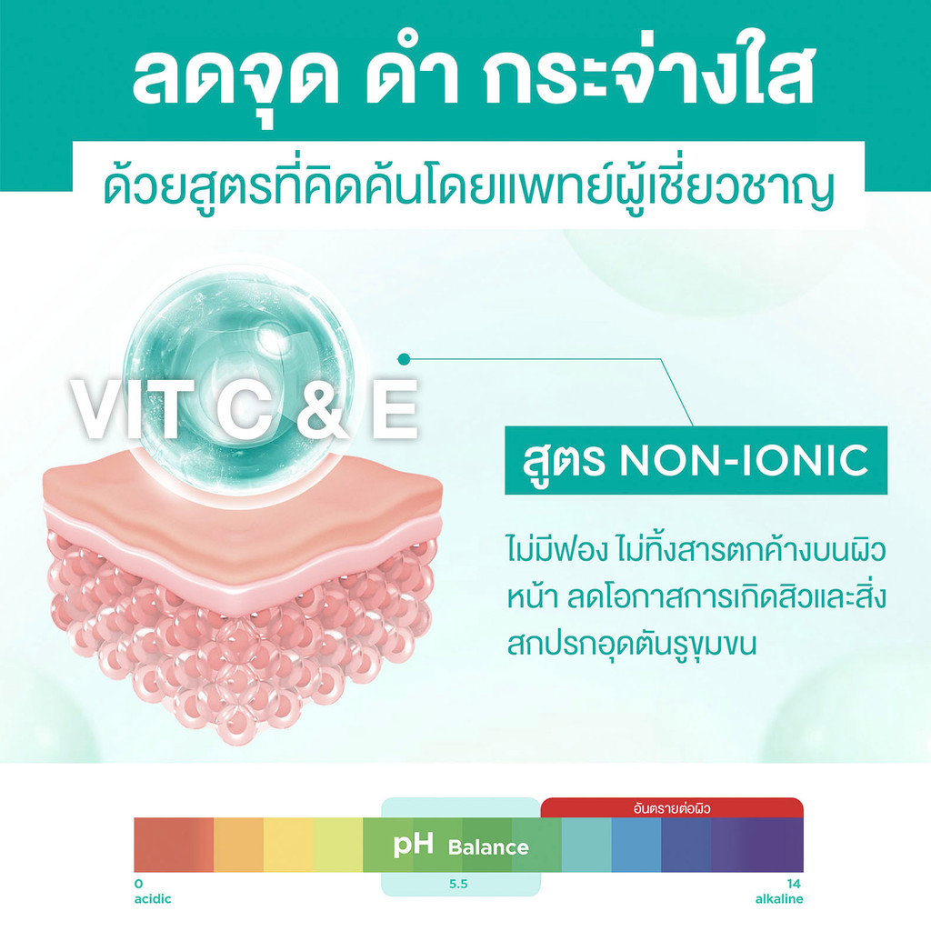 สูตร Non-ionic 100%ทำความสะอาดผิวหน้าได้ล้ำลึก ไม่ทิ้งสารตกค้างบนผิวหน้าอ