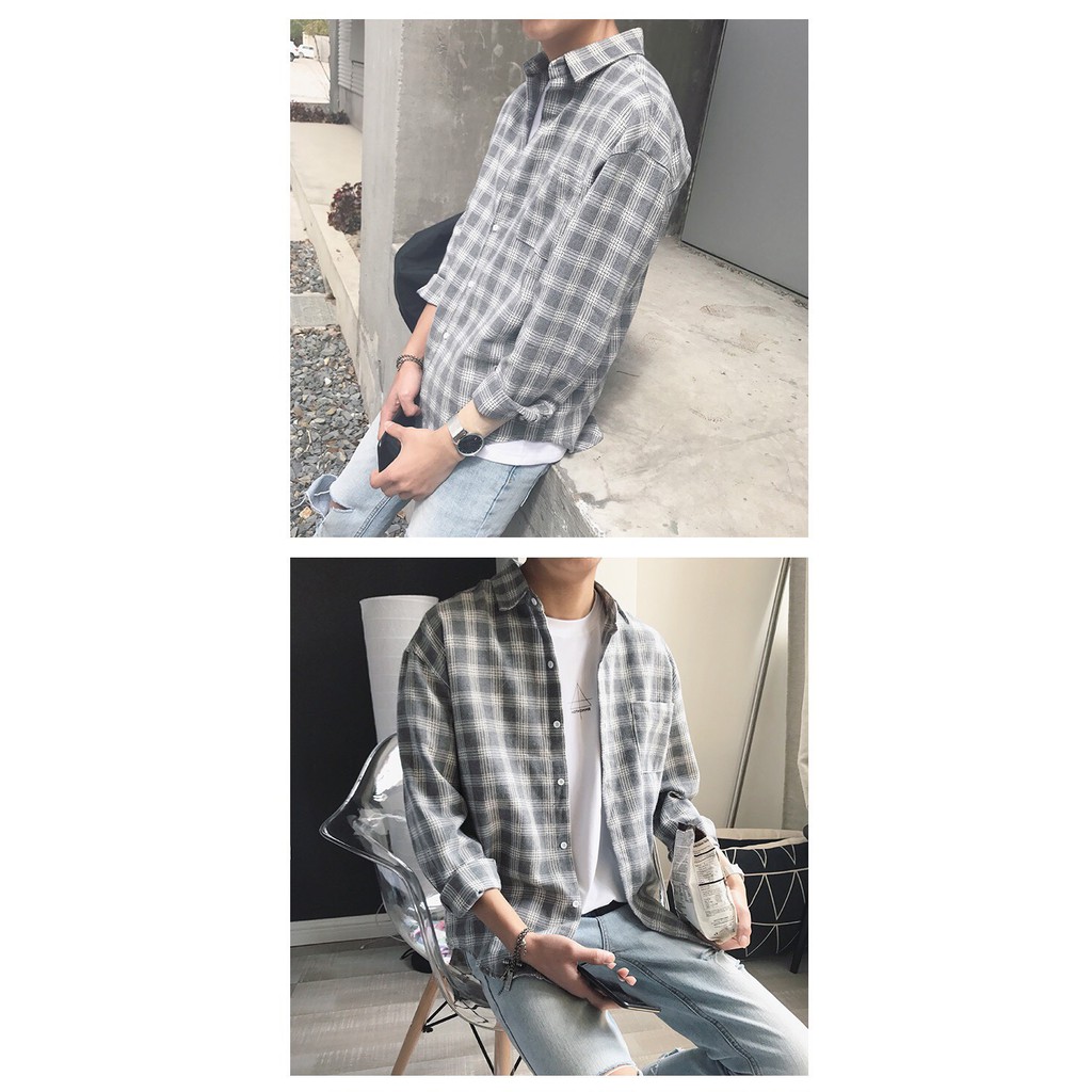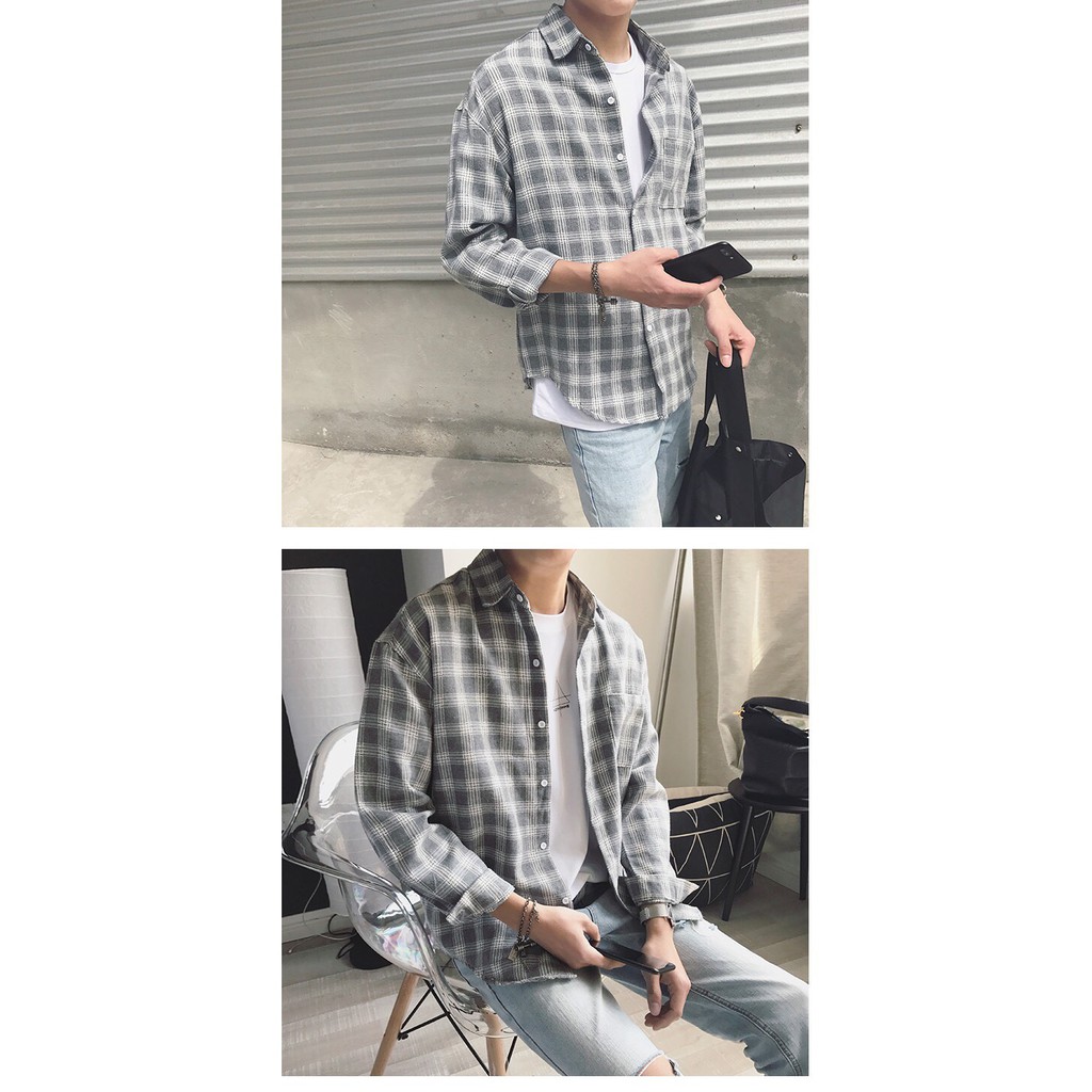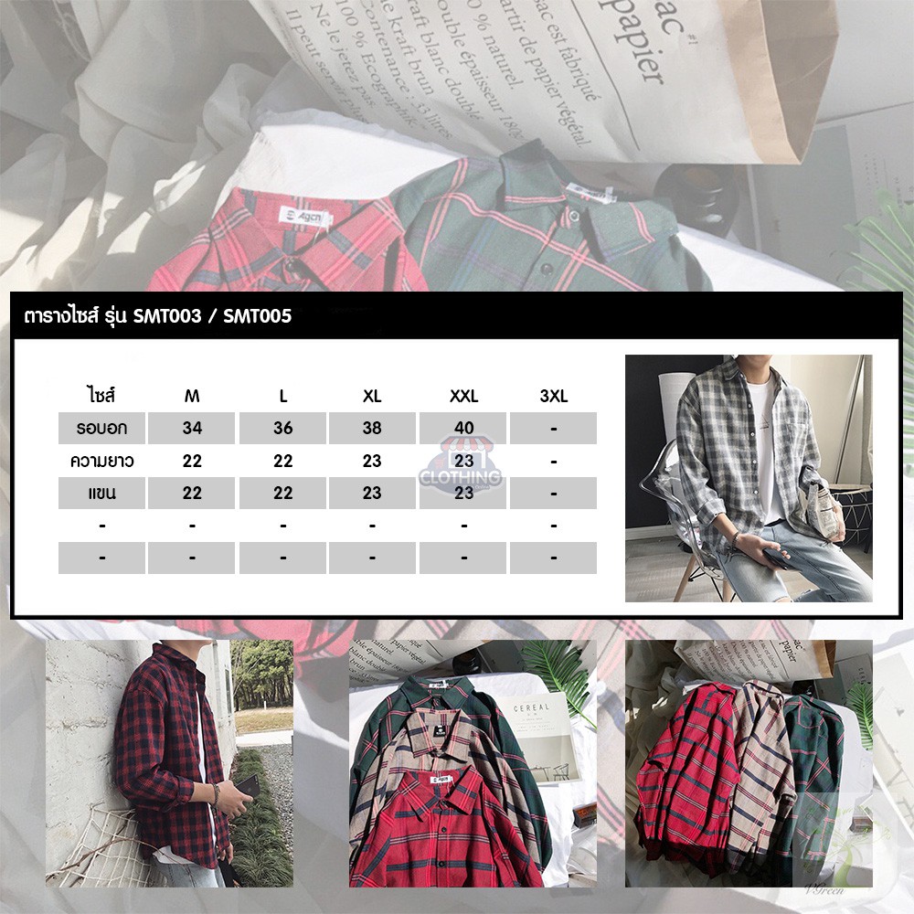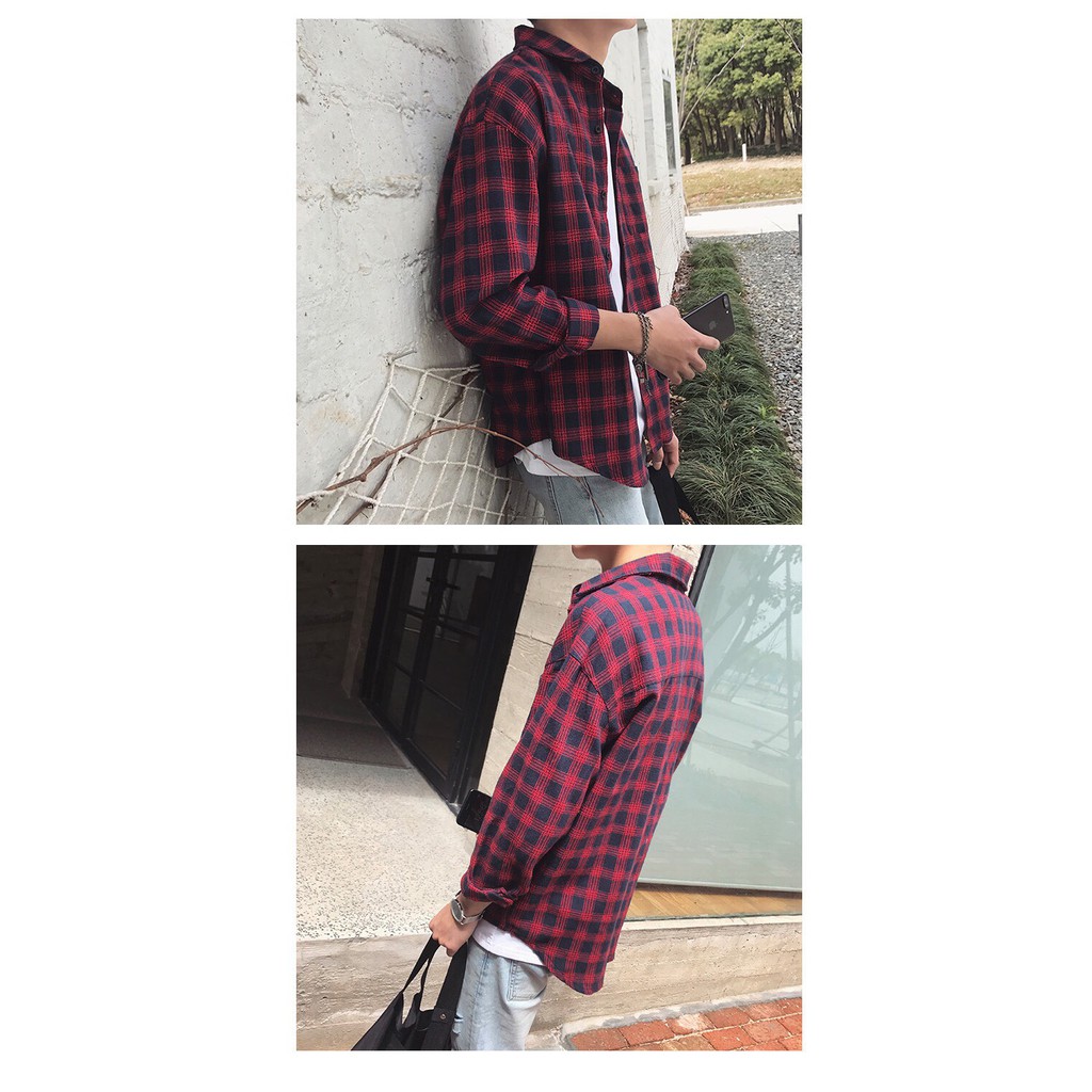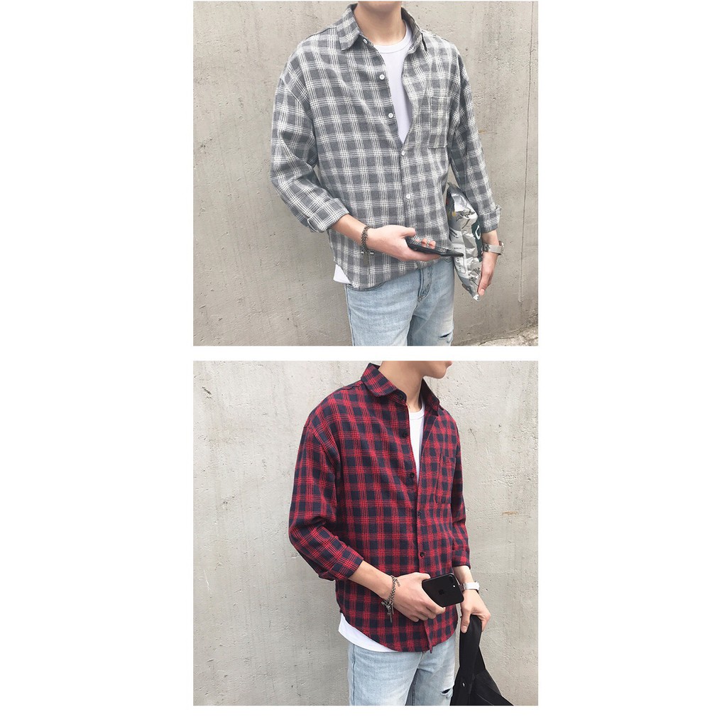 SMT003 เสื้อเชิ้ตชายลายสก๊อต ใหม่เวอร์ชั่นเกาหลีของฤดูใบไม้ร่วง เสื้อหลวมใส่สบาย ๆ size M.L.XL.XXL Red / gray