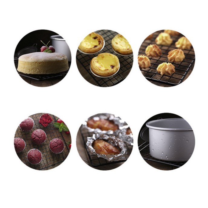 หยิบใส่ตะกร้าตะแกรงพักขนม ขนาดมาตรฐาน ไว้ผึ่งเค้กออกจากพิมพ์ เคลือบ Non-Stick ขาตั้งในตัว ขนาดกลาง 25.5x28cm. สีดำ สีทอง