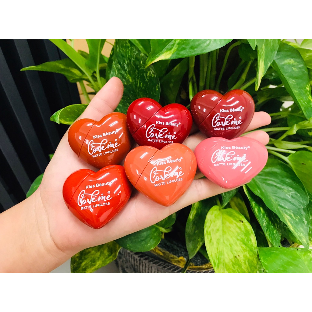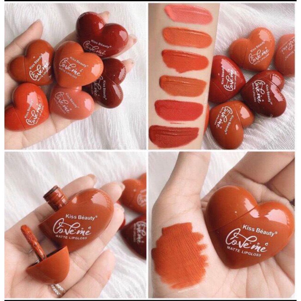 ลิปจุ่มคิส บิวตี้ ลิปรูปหัวใจ Kiss Beauty ลิปจุ่มเนื้อแมท สีสวยติดทนนาน ลิปจุ่มเนื้อแมทเนื้อดี แห้งไว สีสวย ติดทน กันน้ำ ไม่ทำให้ปากดำแถมยังให้เรียวปากชุ่มชื่้น ถึงจะเป็นเนื้อแมทแต่ไม่ทำให้ปากลอกเป็นขุยๆจ้า มาในแพคเกจรูปหัวใจน่ารักมากๆๆพกพาง่ายสะดวก ไม่มี