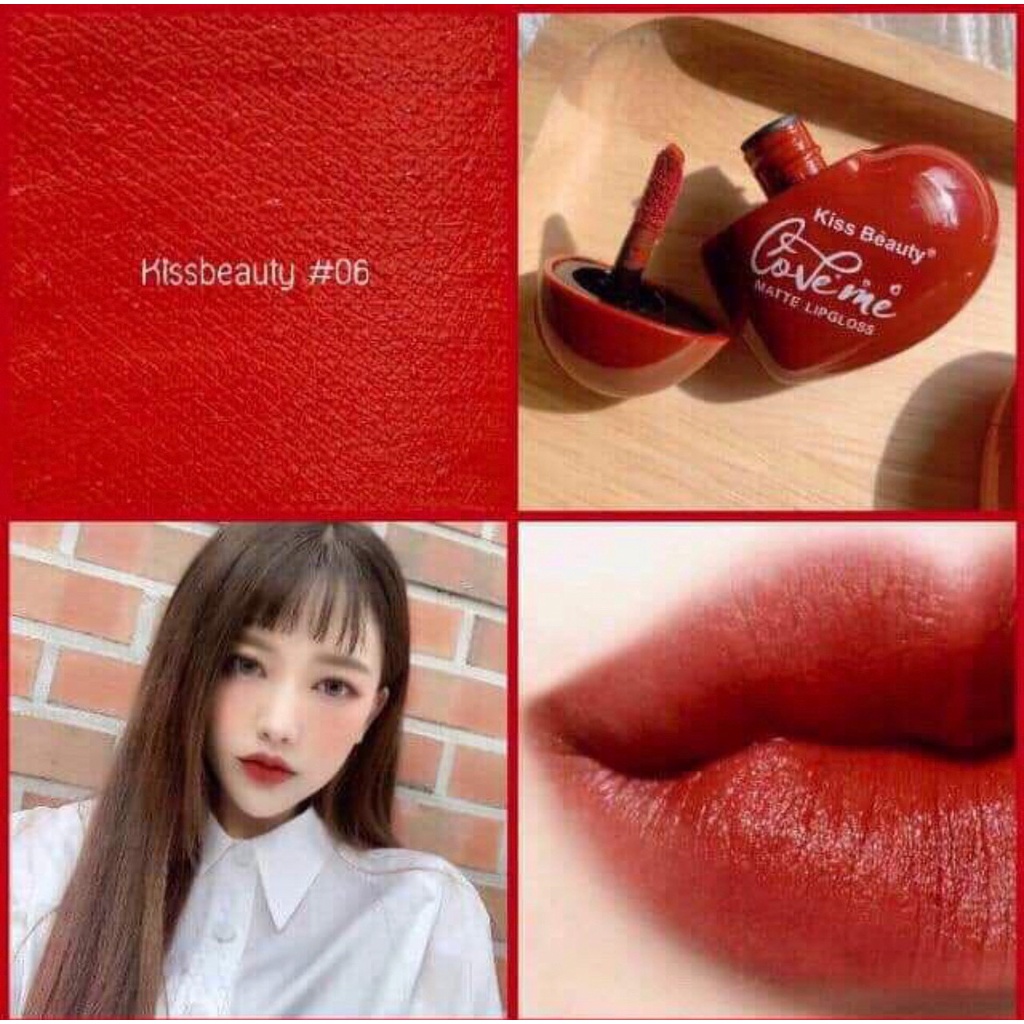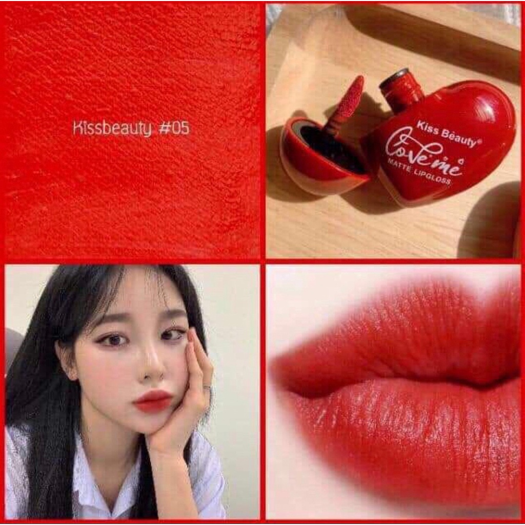 7870-03 👄🍓 ลิปจุ่มคิสบัวตี้ลิปรูปหัวใจ Kiss Beauty ลิปจุ่มเนื้อแมก สีสวยติอทนนาน