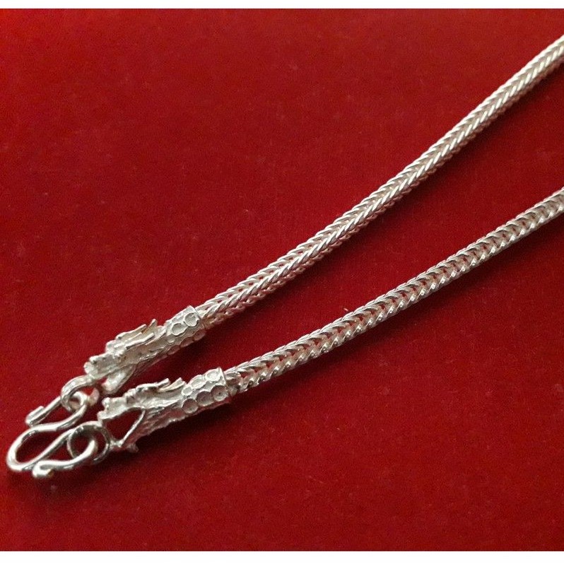 สร้อยคอเงินแท้ ลายสี่เสาหัวมังกร หนา 3 มิล (ขนาด 2บาท)เส้นใหญ่ แข็งแรง
