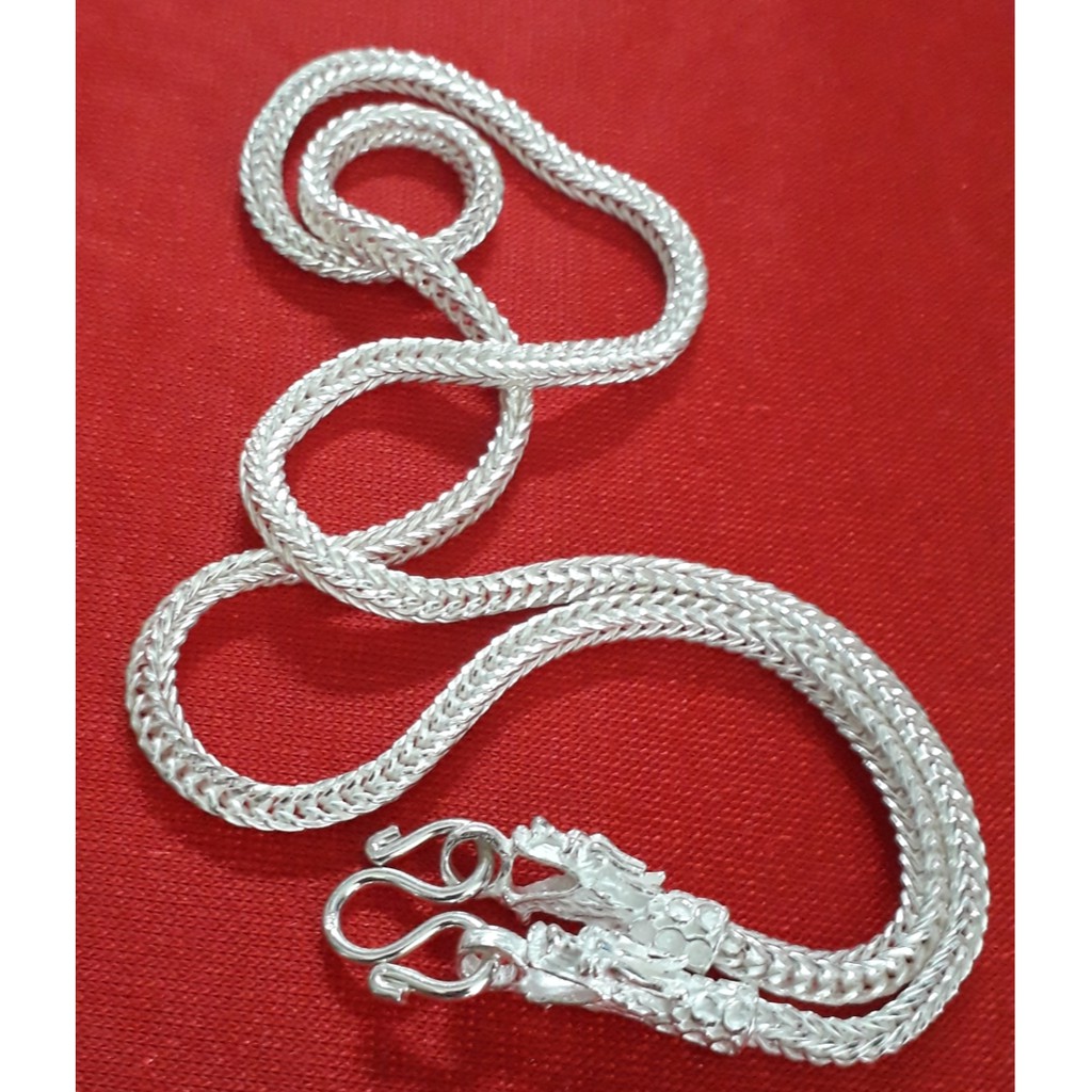 หยิบใส่ตะกร้าสร้อยคอเงินแท้ ลายสี่เสาหัวมังกร หนา 3 มิล (ขนาด 2บาท)เส้นใหญ่ แข็งแรง