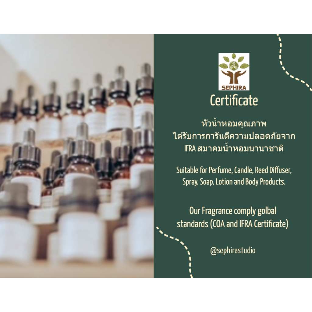 ลักษณะกลิ่น : “กลิ่นหวานอมเปรี้ยว สดชื่น กระปรี้กระเปร่า แนวผลไม้รสเปรี้ยว จาก เสาวรส ”