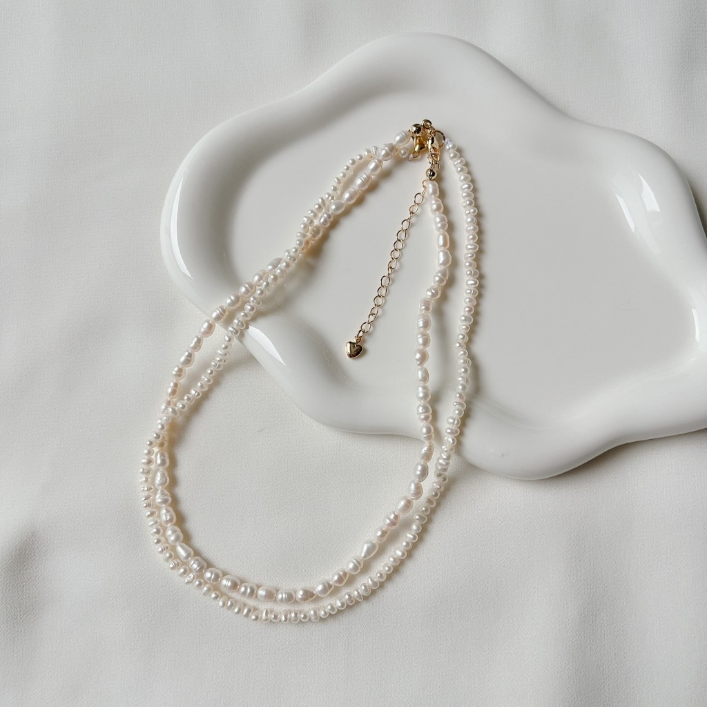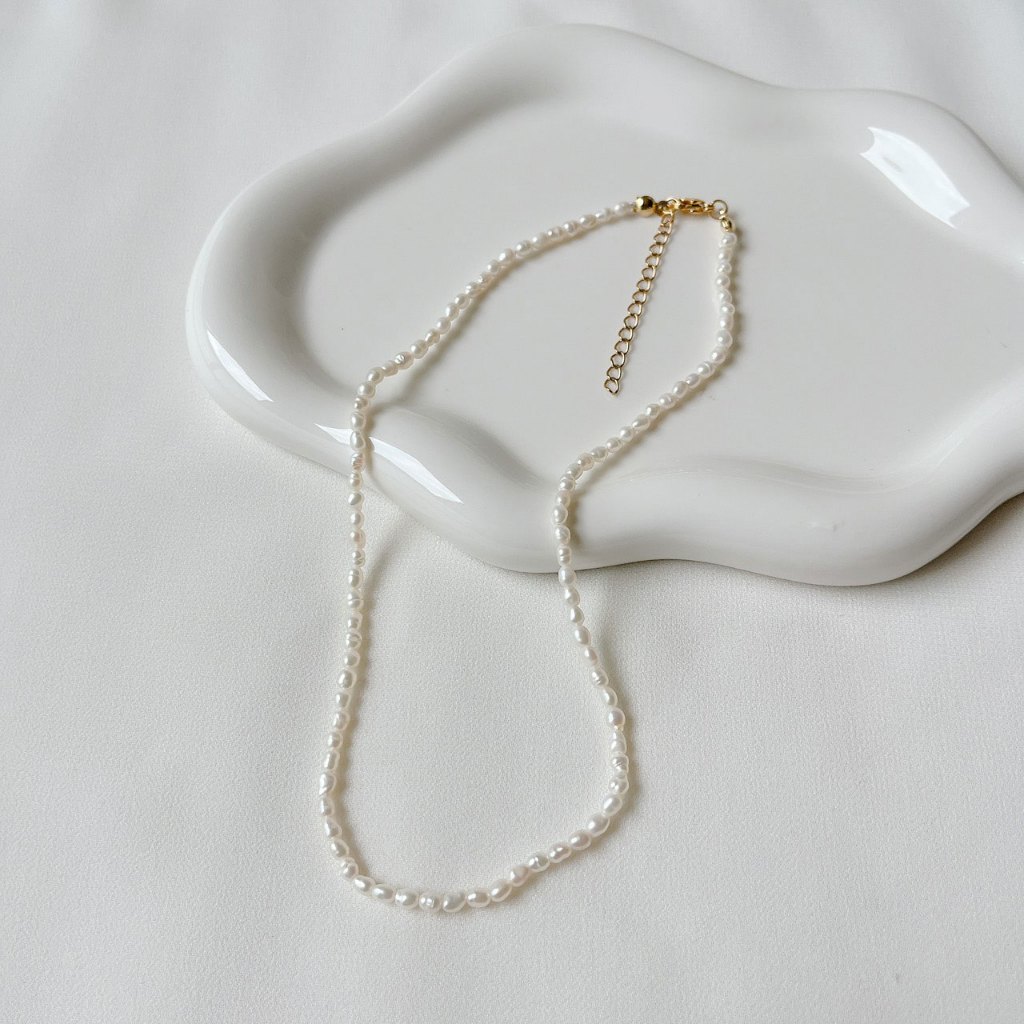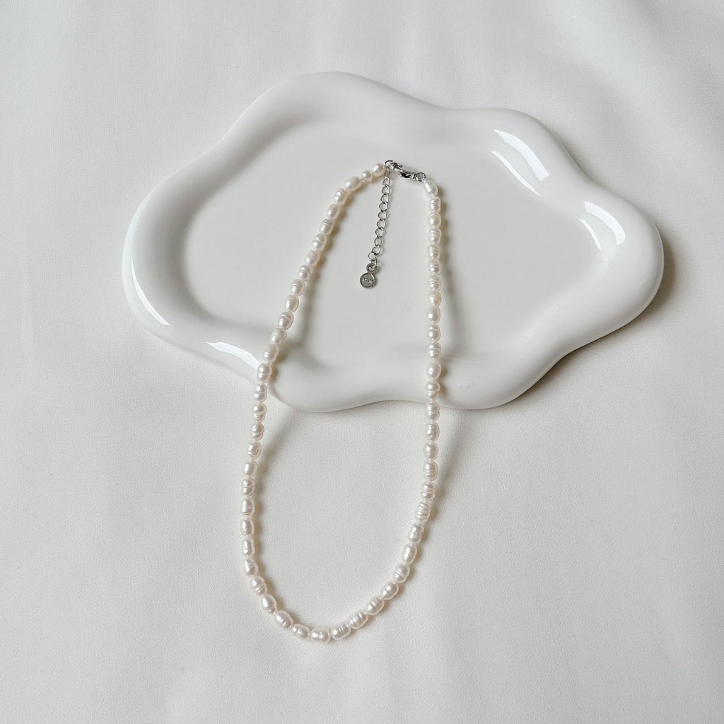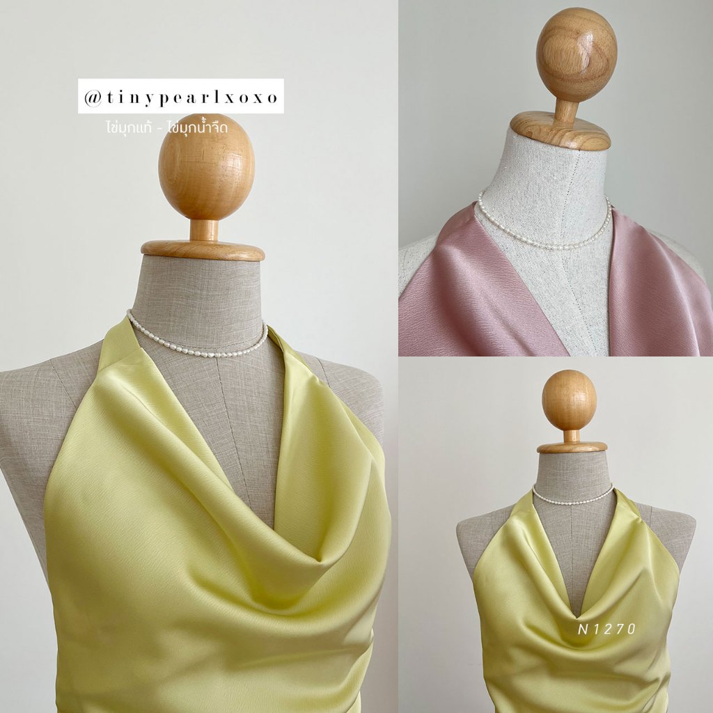 สร้อยคอไข่มุกแท้ ขนาด 4-6mm เป็นไข่มุกขนาดกลางๆ ทรงรี-ทรงไข่ (Oval) สีขาว-ครีม และไข่มุกสีพีช ไข่มุกน้ำจืด มีริ้วรอยบ้างเล็กน้อยตามธรรมชาติ