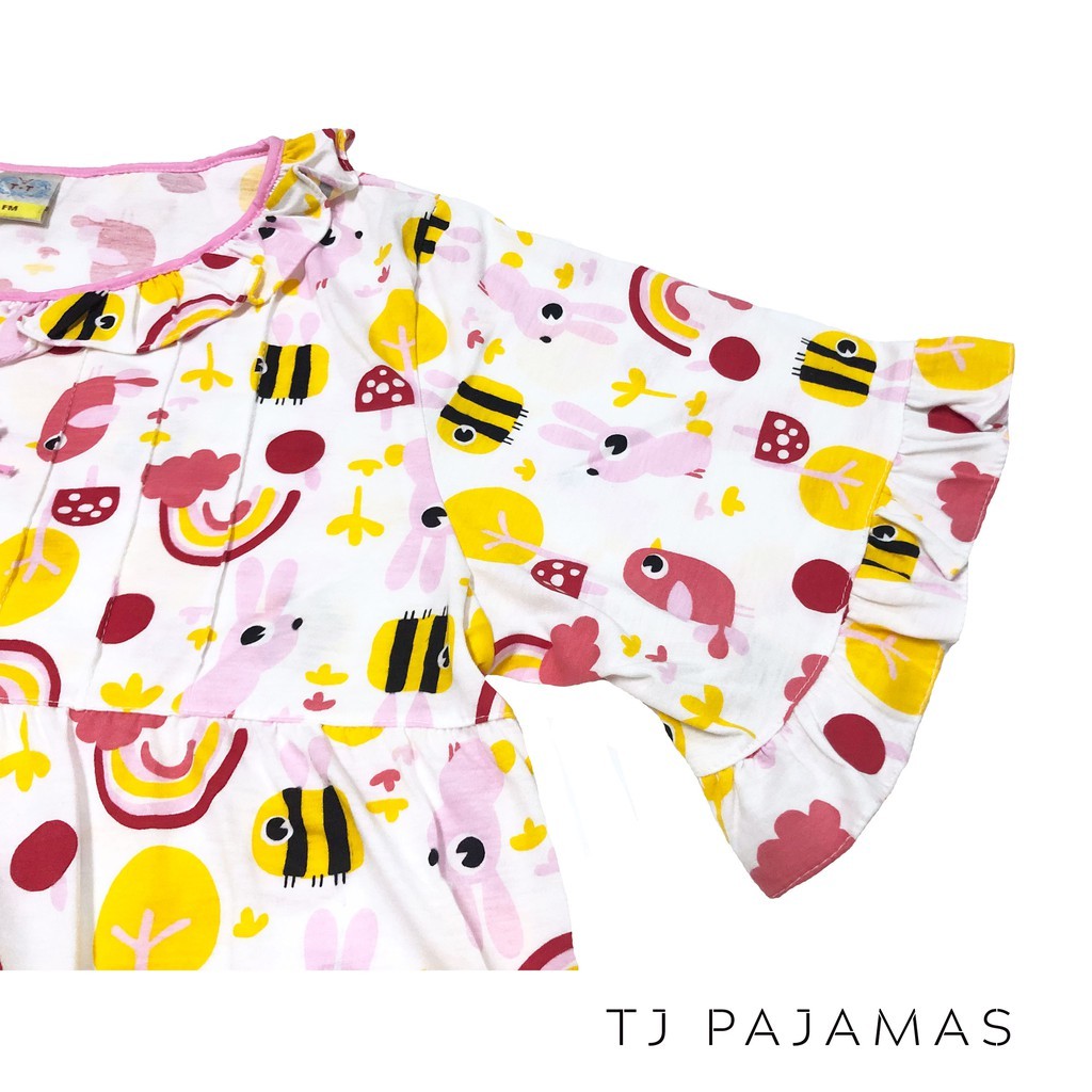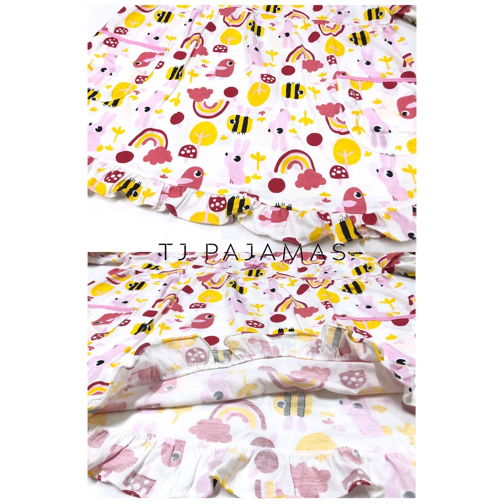T+T ชุดนอนผู้ใหญ่ ผ้ายืด คอระบาย แขนสั้นขาสั้น ฟรีไซส์