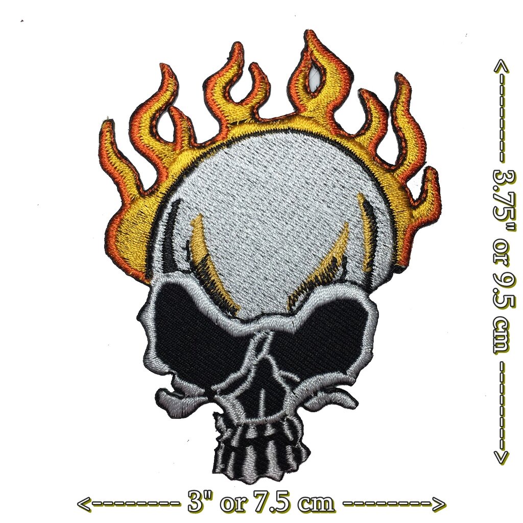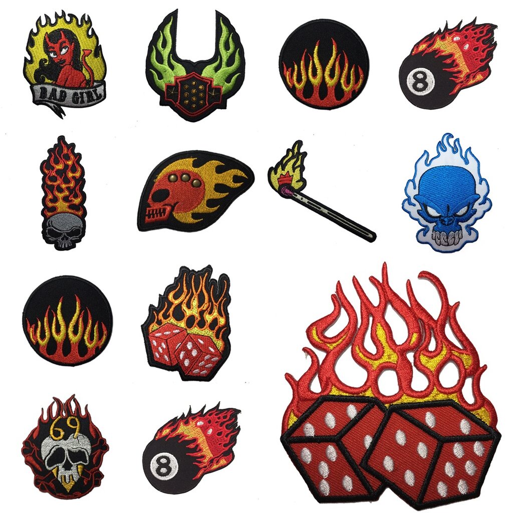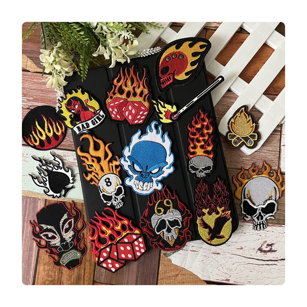 ไฟ กะโหลก มอเตอร์ไซด์ ตัวรีดติดเสื้อ อาร์มรีด อาร์มปัก ตกแต่งเสื้อผ้า หมวก กระเป๋า แจ๊คเก็ตยีนส์ Dark Embroidered Iro…