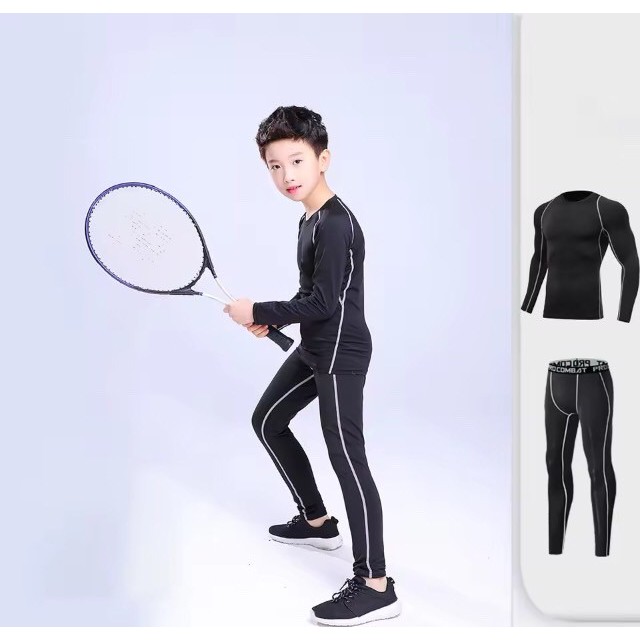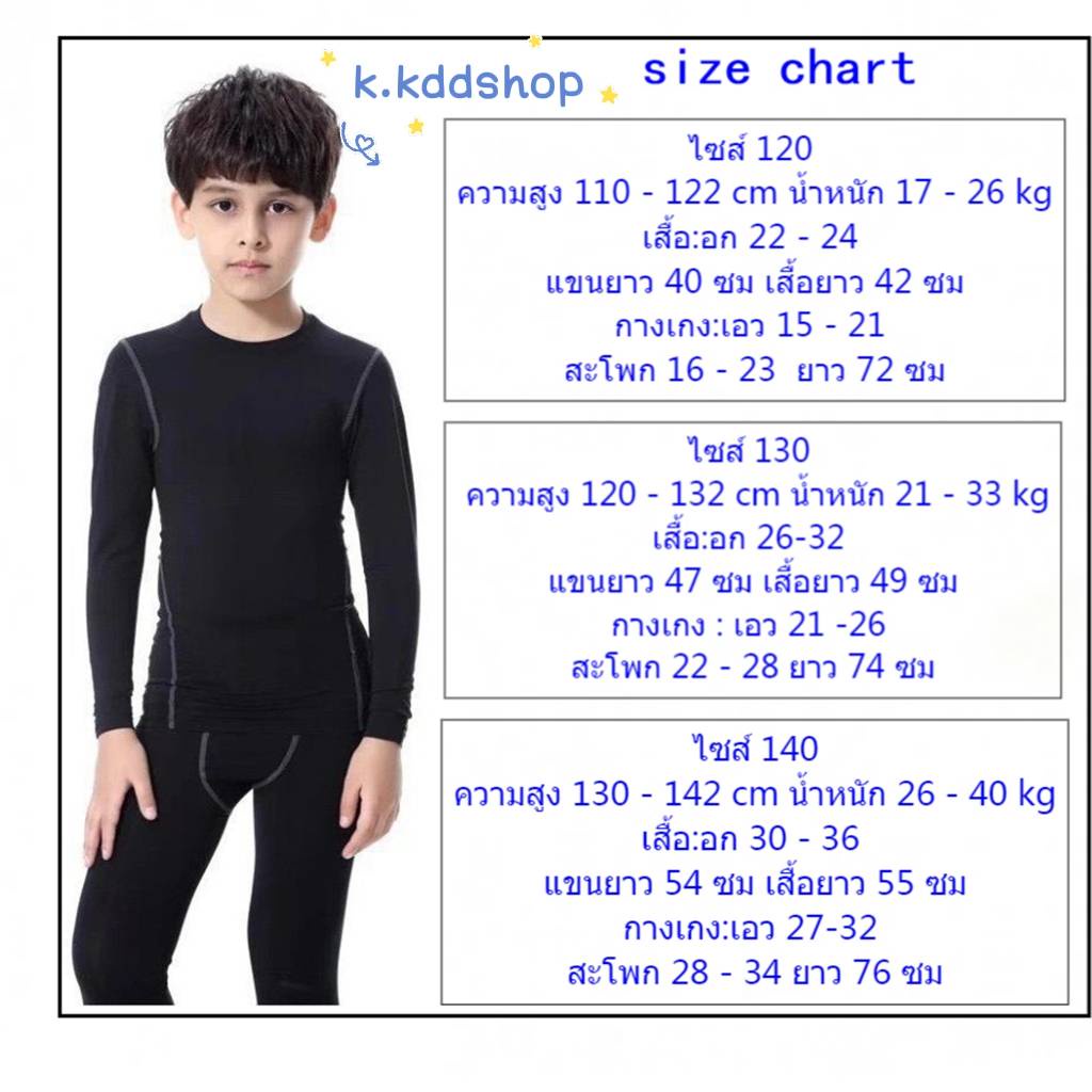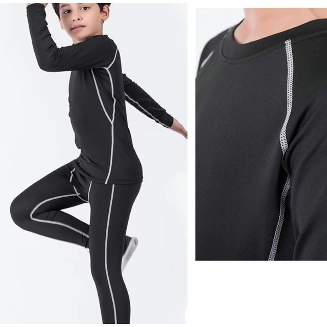 ชุดรัดกล้ามเนื้อเด็ก เสื้อแขนยาว + กางเกงขายาว เนื้อผ้านิ่ม ใส่สบาย ระบายเหงื่อได้ดี ไม่อับชื้น