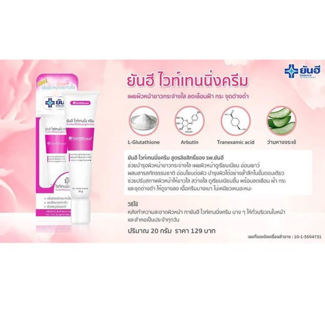 ยันฮี ไวท์เทนนิ่งครีม สูตรลิขสิทธิ์ของ รพ.ยันฮี