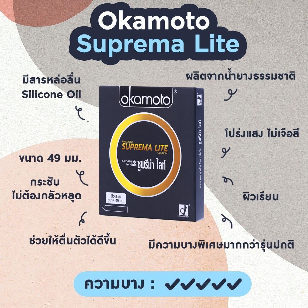 หยิบใส่ตะกร้าOkamoto Condom ถุงยางอนามัย โอกาโมโต ของแท้ made in japan ขนาด 49, 52, 54, 56 มม. [1 กล่อง] ถุงยาง