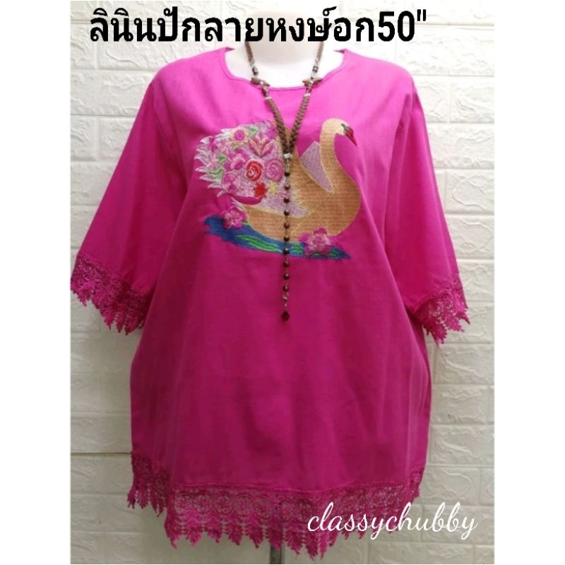 เสื้อลินินคอกลมปักลายหงษ์ (เสื้อตัวใหญ่มาแล้วค่ะ)