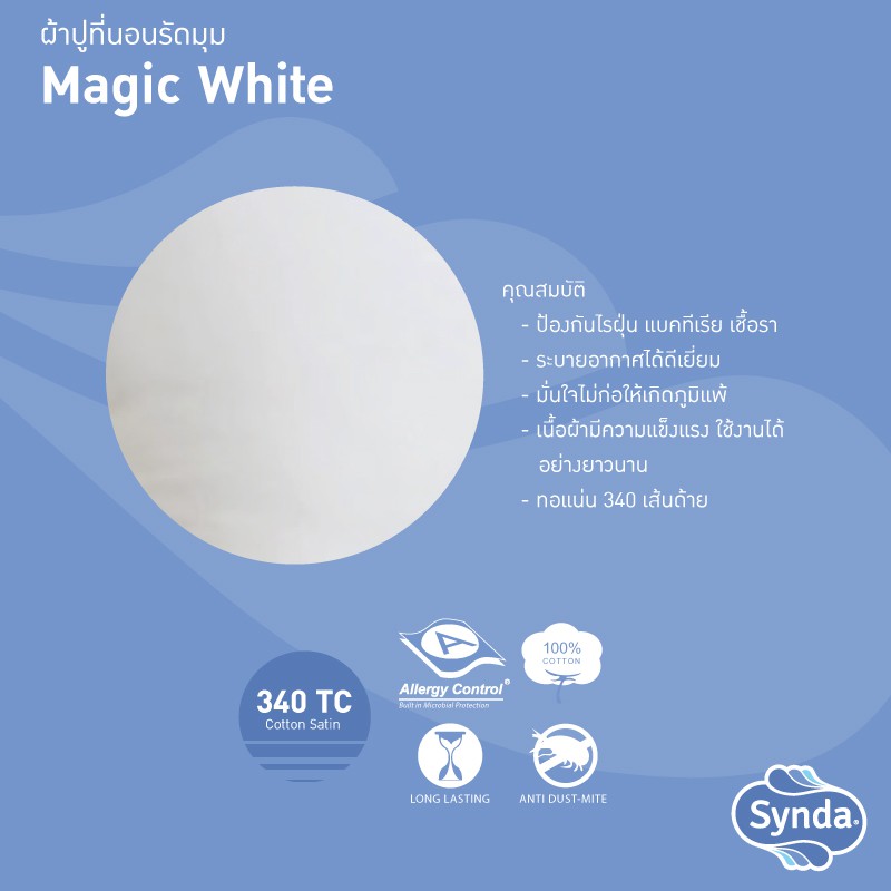 Synda ผ้าปูที่นอนรัดมุมสีพื้น Cotton รุ่น MAGIC WHITE สีขาว สีพื้น