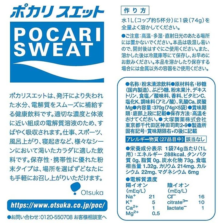 Pocari Sweat เครื่องดื่มอิเลคโตรไลท์ แบบผง ผสมน้ำ 1L.