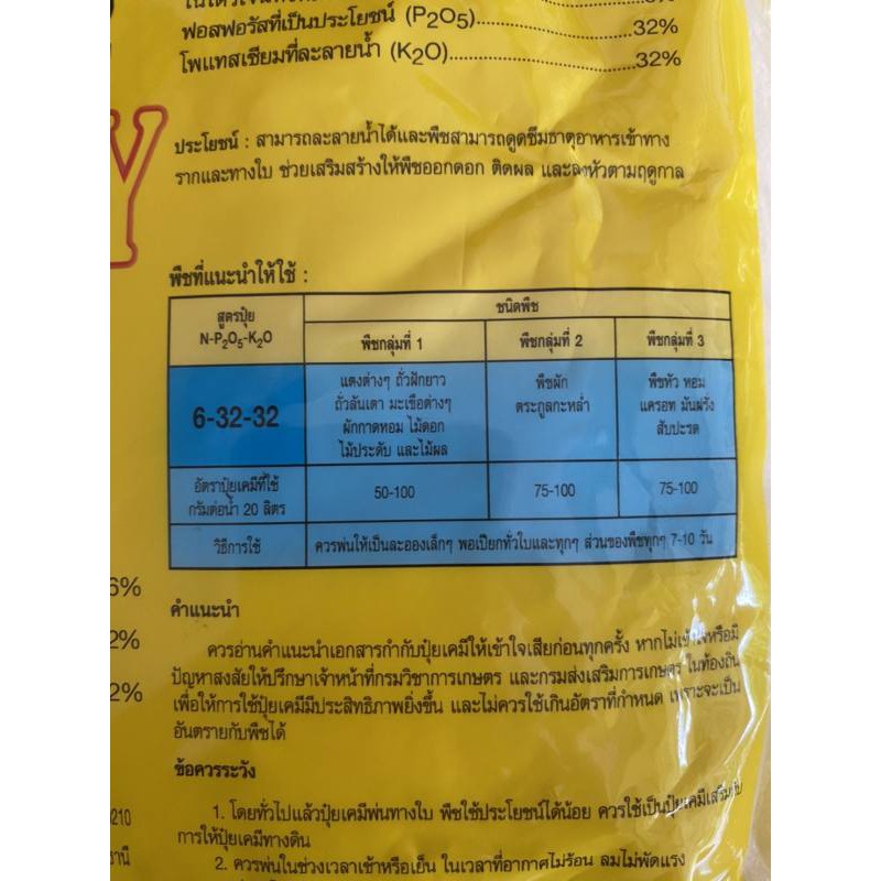 หยิบใส่ตะกร้าปุ๋ยเกล็ด 6-32-32 ฮอร์โมนพืช อาหารเสริมสำหรับพืช สร้างดอก บำรุงผล เพิ่มน้ำหนัก ใช้ได้กับพืชทุกชนิด