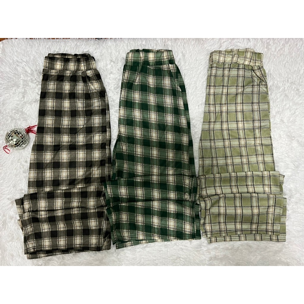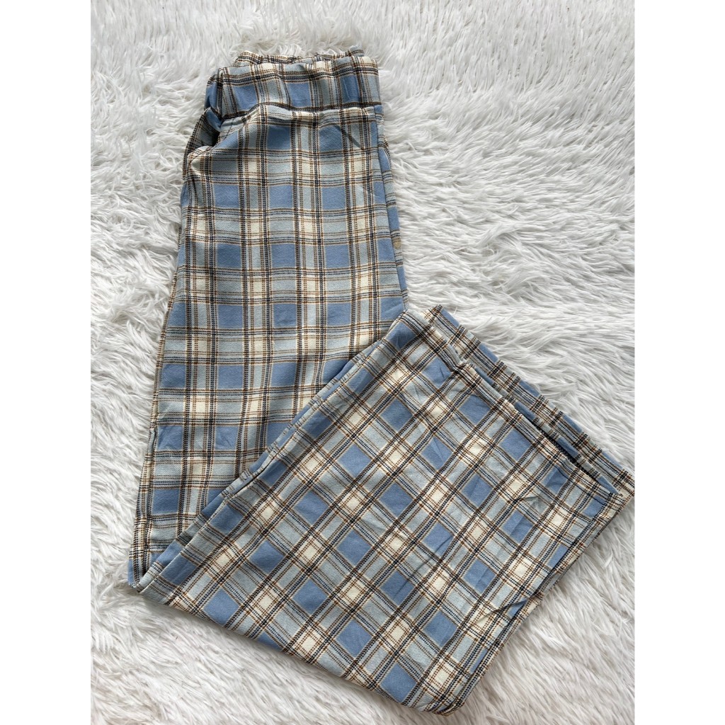 กางเกงขาบานยาวลายสก๊อต