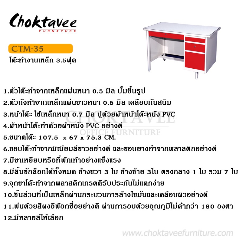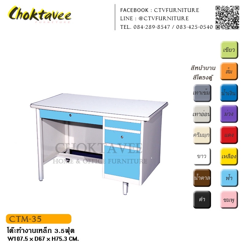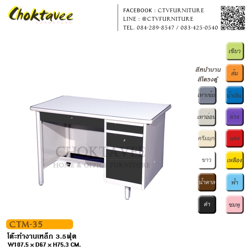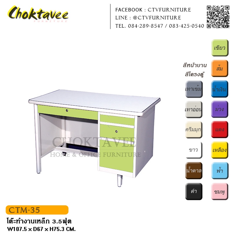 โต๊ะทำงานเหล็ก 3.5ฟุต กันน้ำทั้งตัว CTM-35