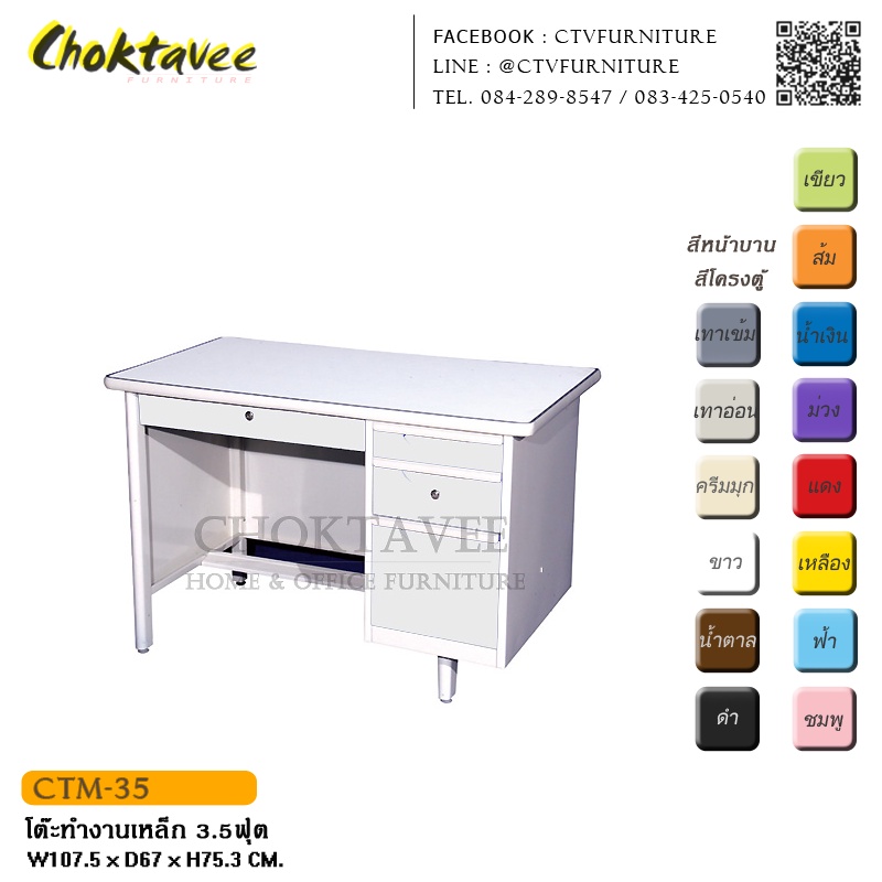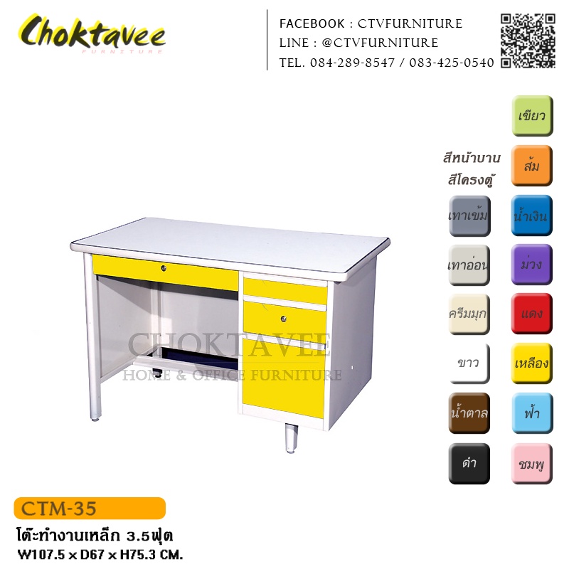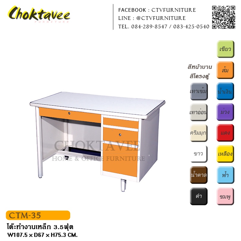 หยิบใส่ตะกร้าโต๊ะทำงานเหล็ก 3.5ฟุต กันน้ำทั้งตัว CTM-35