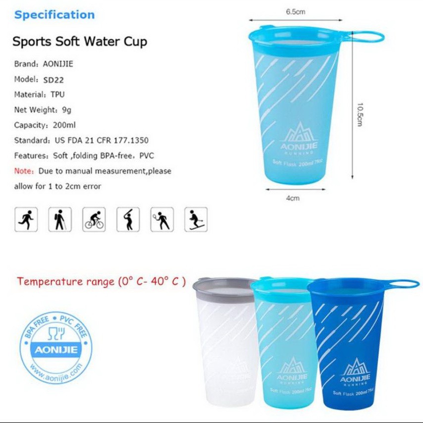 Aonijie SD22-170ml.-200ml. แก้วซิลิโคน TPU พับได้ พกพา สำหรับวิ่งมาราธอน วิ่งเทรล ของแท้ 100%แก้วน้ำนิ่ม แก้วพับได้ พกพาสะดวก ช่วยโลก ลดขยะ Reusable Folding soft water cup