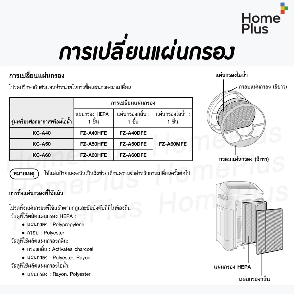 แผ่นกรองไอน้ำที่ใช้ทดแทน FZ-A60MFE สำหรับเครื่องฟอกอากาศ Sharp รุ่น ดังต่อไปนี้