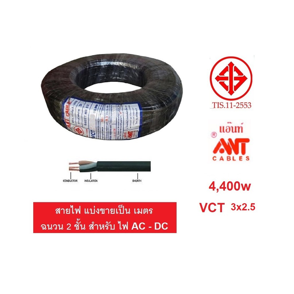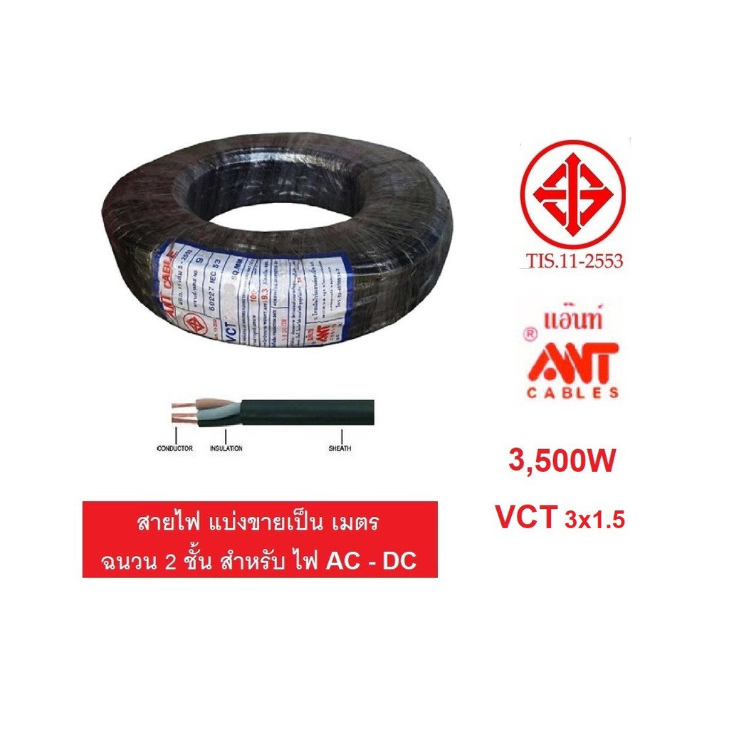 ANT / STT สายไฟ VCT 3×1 3×1.5 3×2.5 750VAC ตัดขายเป็นเมตร 1เมตร ทองแดงแท้100% เหมาะสำหรับเครื่องจักร ไฟ AC / D