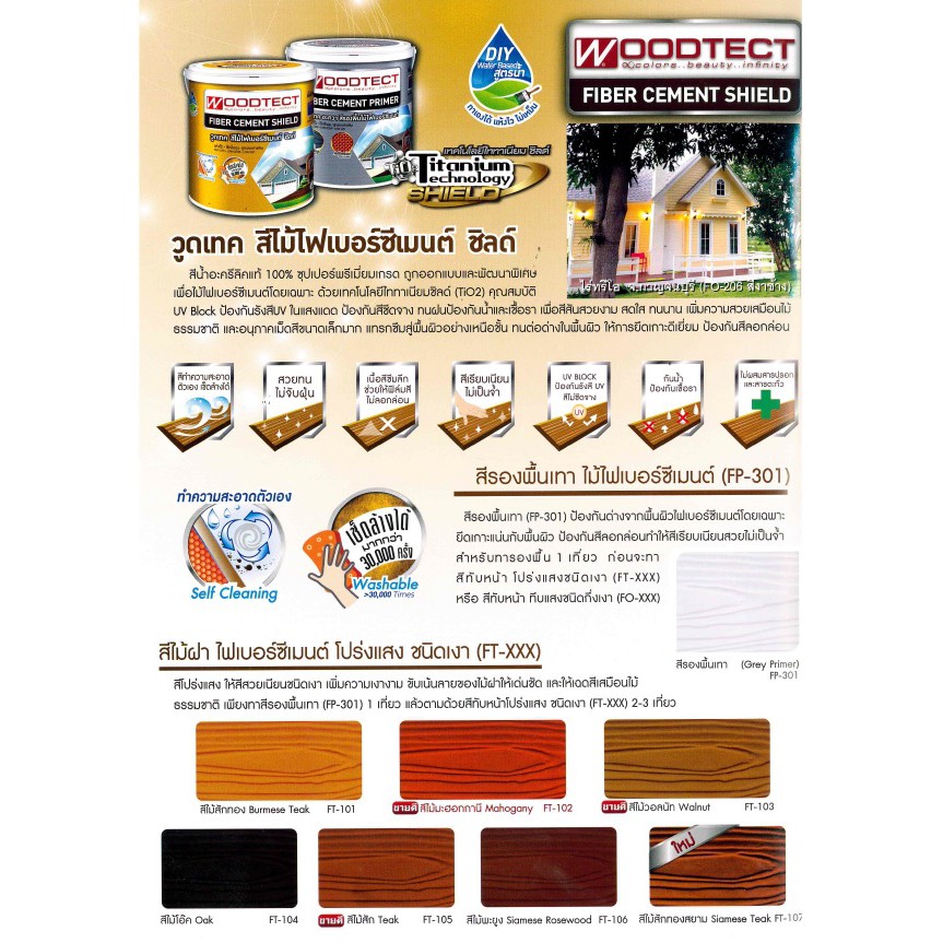 วูดเทค สีไม้ฝา ไฟเบอร์ซีเมนต์ ทึบแสง (ชนิดกึ่งเงา) WOODTECT Fiber Cement Paint (Semi – Gloss)