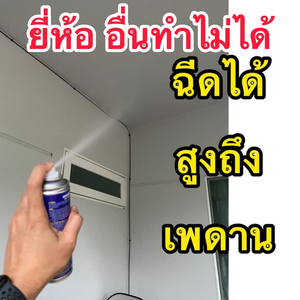 – มีท่อ ต่อเสปรย์ ทำให้ฉีดในซอก ใสรูเพดาน ห้องเครื่องรถยนต์ ฝ้าเพดาน ที่แคบ ได้