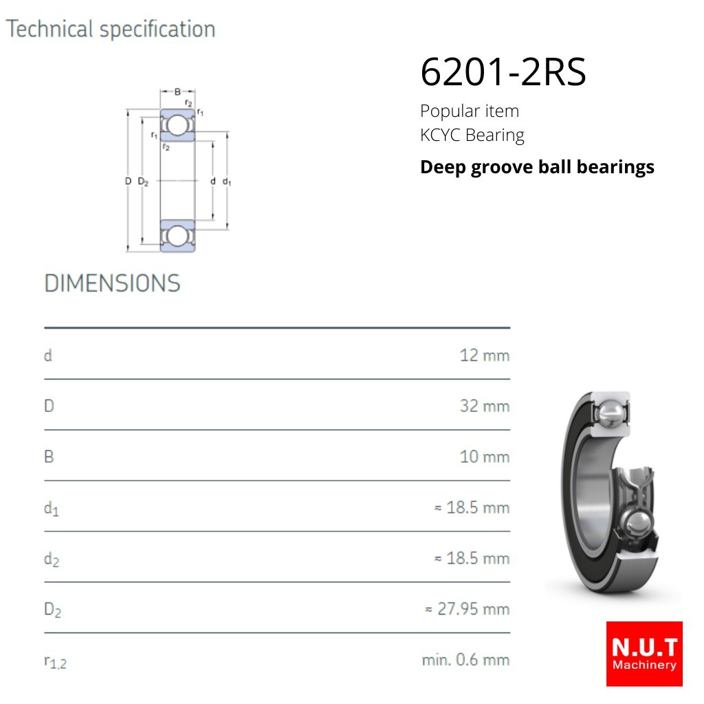 – KCYC 6201-2RS ตลับลูกปืนเม็ดกลมร่องลึก ฝายาง 2 ข้าง