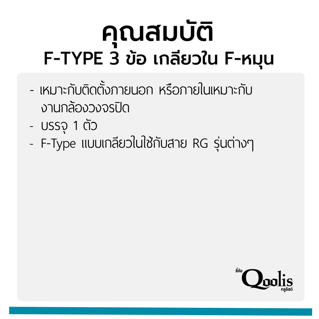 F-TYPE 3 ข้อ เกลียวใน F-หมุน F Type สำหรับสาย RG รุ่นต่างๆ บรรจุ 1 ตัว สีเงิน รหัส 12002