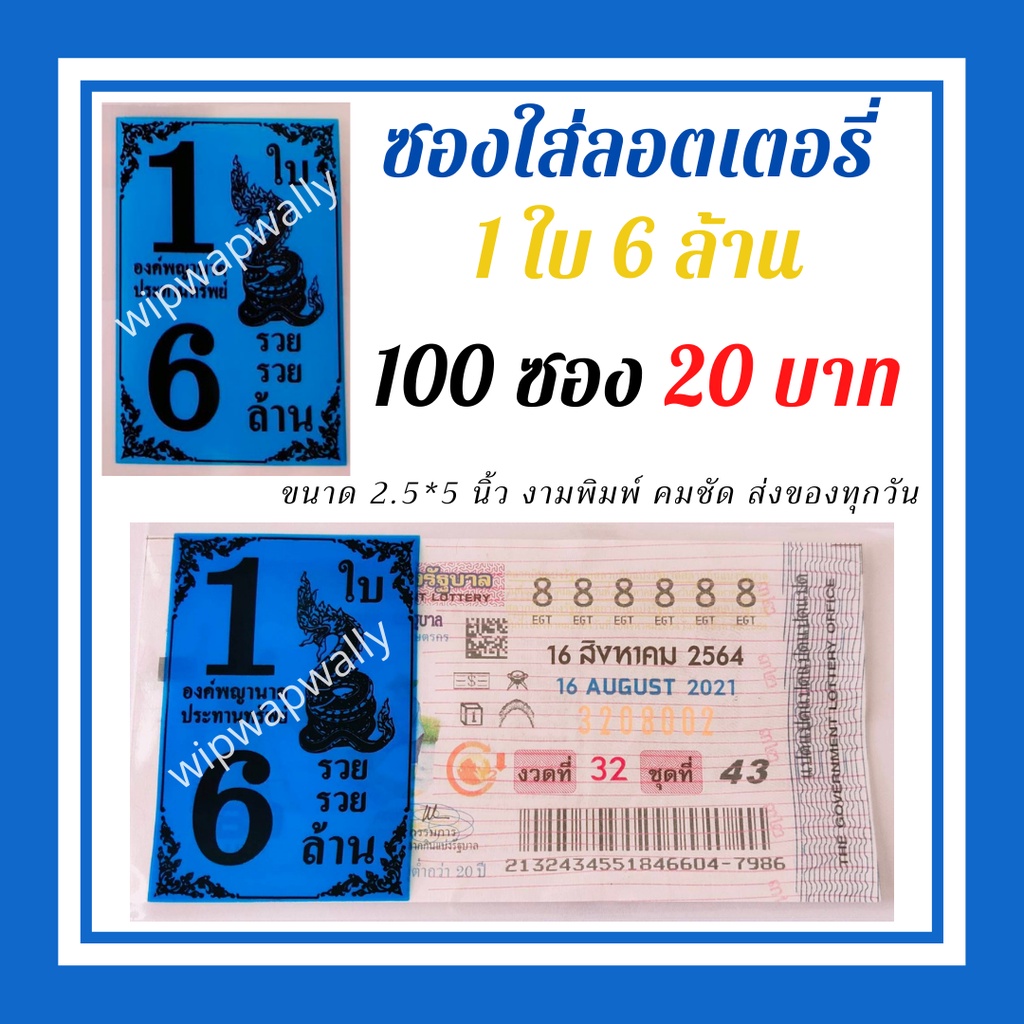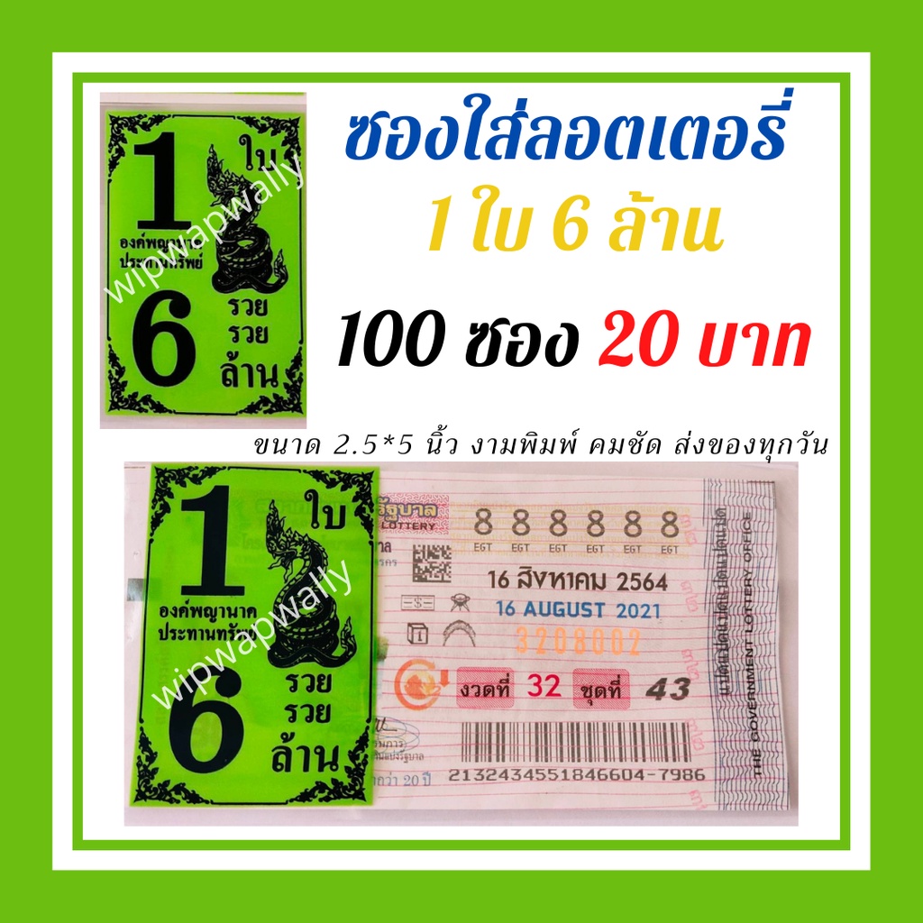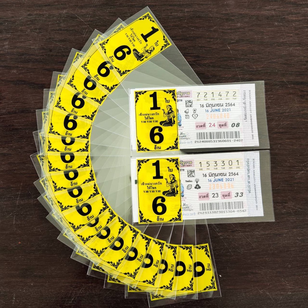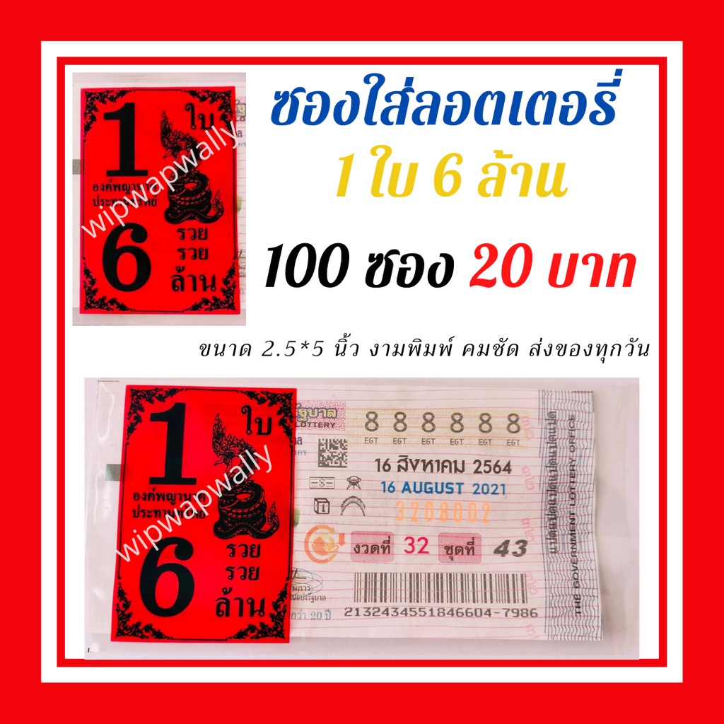 ซองแก้วใส สกรีน1ใบ6ล้าน ซองใสใส่ลอตเตอรี่ มี 6สี ซองแก้วใสใส่ลอตเตอรี่1แพค 20 บาทได้100ซอง สำหรับใส่สลากกินแบ่งรัฐบาล