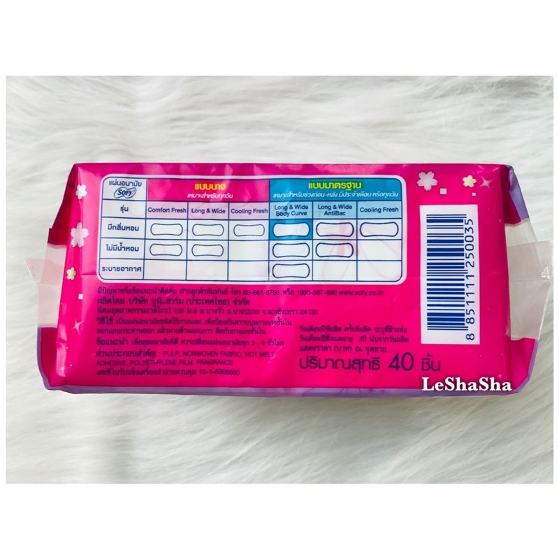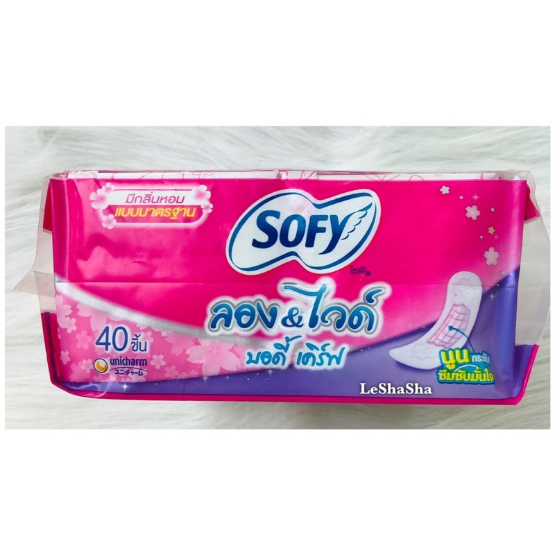 🔥ล็อตใหม่ล่าสุดๆๆๆ แท้ 💯% ส่งไว🔥ผ้าอนามัยประจำวันโซฟี Sofy แผ่นอนามัยโซฟี ลอง &ไวด์ บอดี้เคิร์ฟ แบบมาตรฐาน 40 ชิ้น มีกลิ่นหอม ร้าน LeShaSha