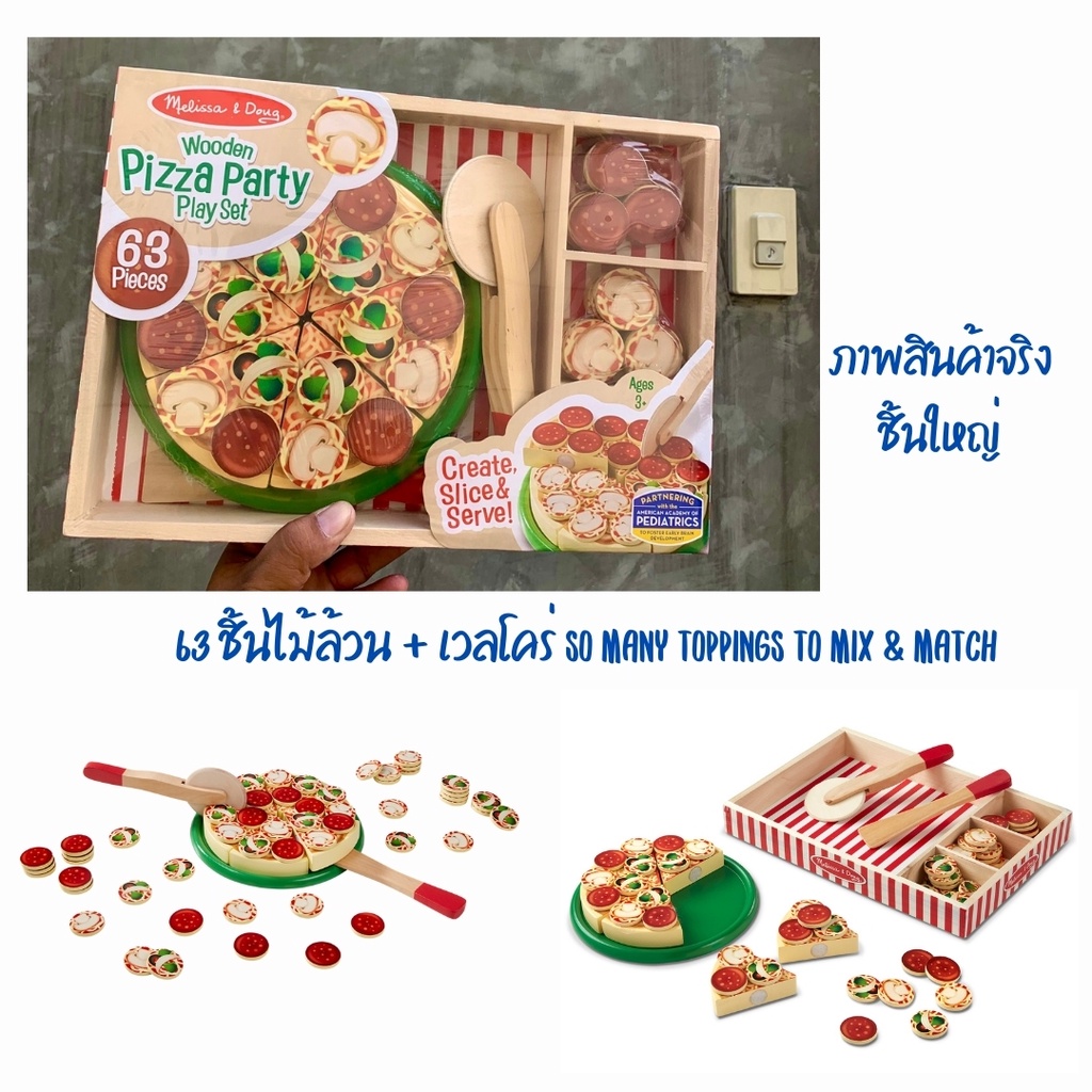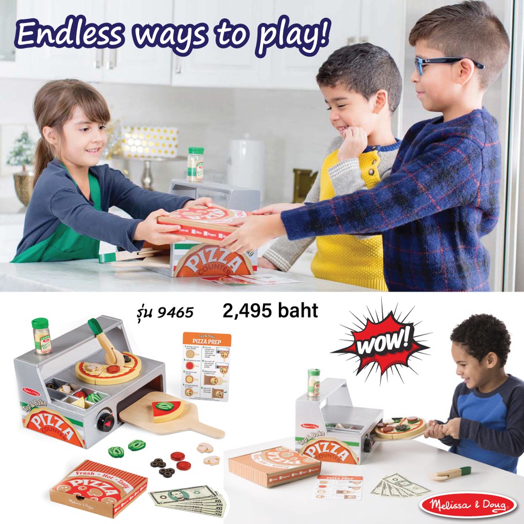 รายละเอียดสินค้า Melissa & Doug รุ่น 9465 Top & Bake Pizza Top ชุดเล่นทำพิซซ่าครบชุด มีเตาปิ้ง ถาดรอง ตัวโด ท้อปปิ้งมากมาย เมนู และอุปกรณ์ครบชุด ทำด้วยไม้ทั้งหมด เสริมจินตนาการ ของแท้รับประ